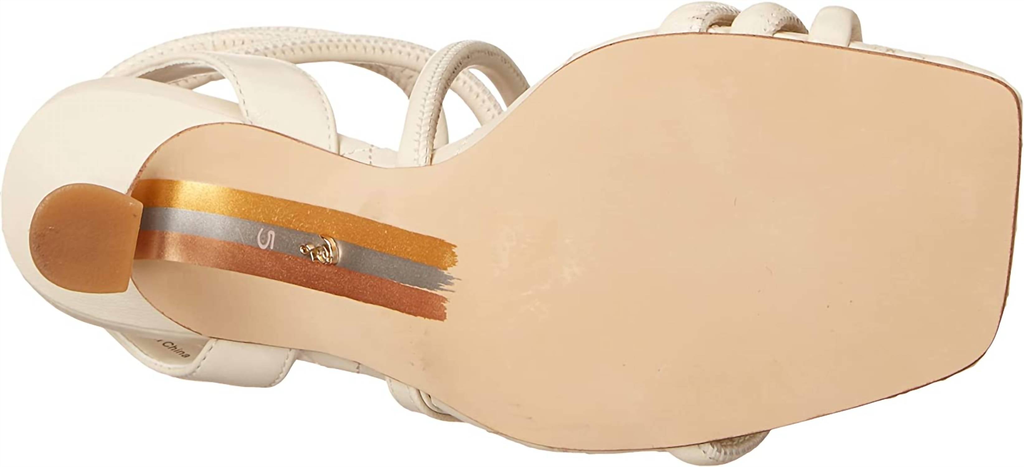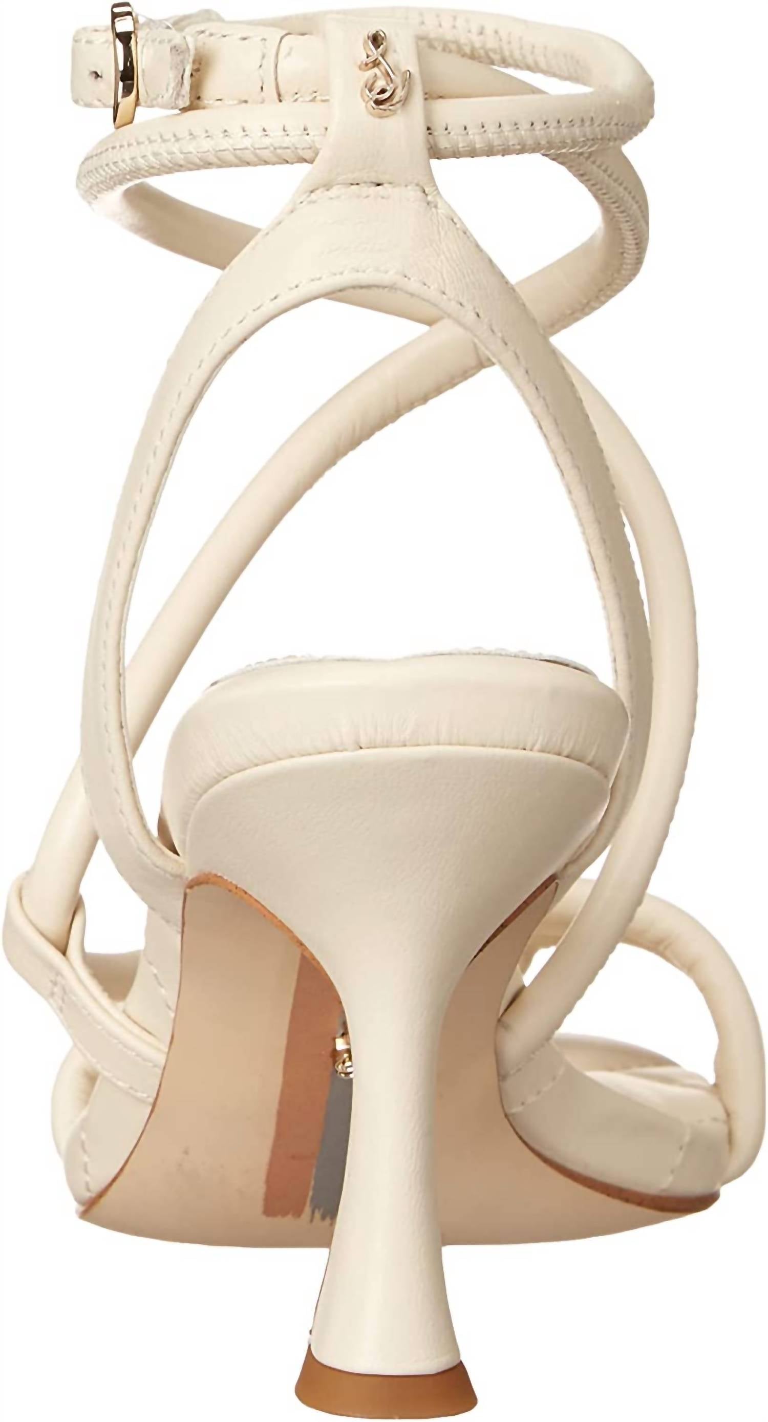 Flowy dresses, cropped pants, and even jumpsuits... this sandal works with them all! Experience the perfect blend of style and comfort with the Women's Maven Padded Strappy Heel by Sam Edelman. These sandals, crafted from Modern Ivory Leather, feature an open-square toe and buckled closure for a secure fit. The shoe boasts a flared 3.3-inch high kitten heel, ideal for weddings or any special occasion. With a cushioned synthetic insole, these shoes promise comfort for long events, while the minimalist design adds a touch of elegance to your spring wardrobe.