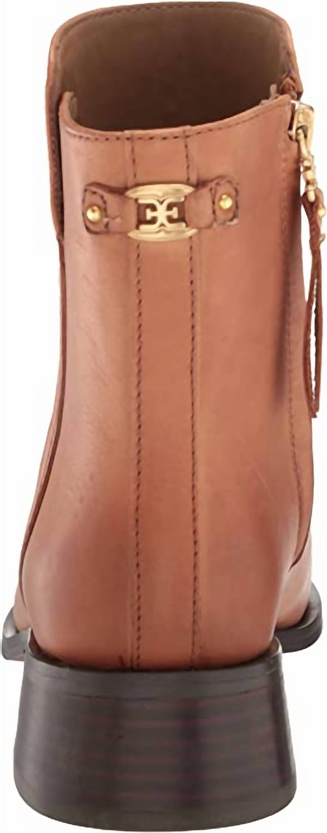 Elevate your fall wardrobe with the Women's Thatcher Ankle Bootie by Sam Edelman, presented in a chic Light Cuoio Brown. Designed with a pull-on closure, this bootie effortlessly combines style and comfort with its square toe design and a 1.6-inch block heel. The shaft height of 5.3 inches and calf circumference of 9.8 inches ensure a perfect fit, while the antique-style leather exterior paired with a synthetic insole provides lasting durability. Perfect for minimalist travel occasions, this ankle boot is a timeless addition to your collection.