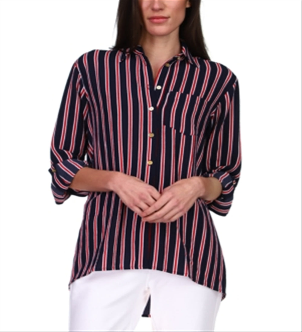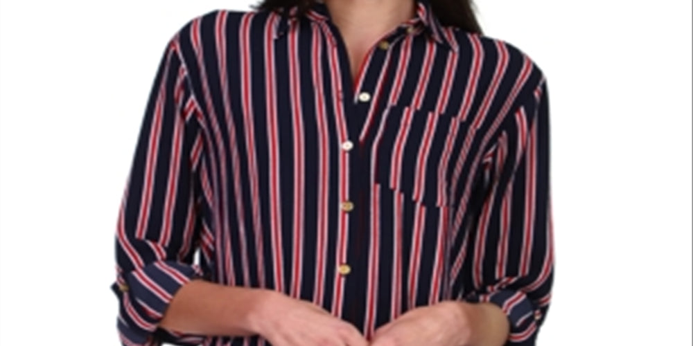 Michael Kors Women's Striped Oversized Button Down Shirt Blue Size X-Large