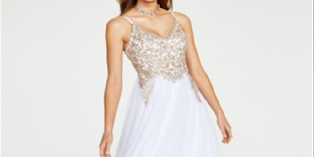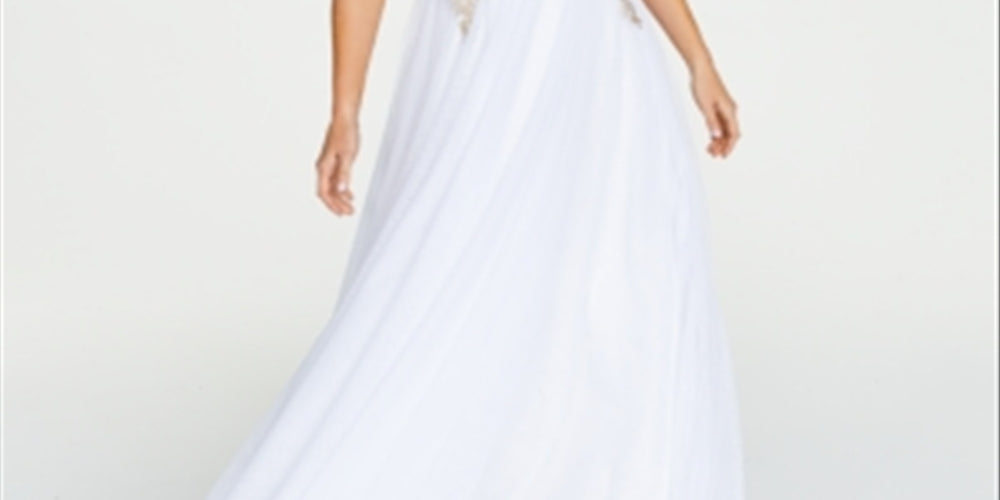 A pretty mix of embroidery and gauzy mesh come together on this corset-back gown from Say Yes to the Prom.| Approx. 62 long from center back neck to hem. Length varies 1/4 between sizes| Sweetheart V-neck| Side zipper closure| Adjustable straps| Embroidered bodice with rhinestones; lace-up corset back; mesh skirt