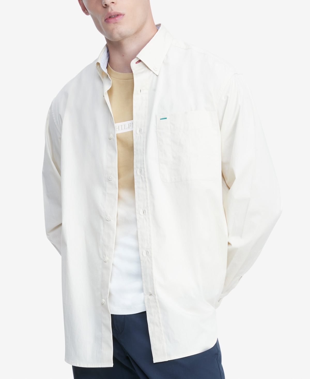 When chillier days start to meddle with your routine| reach for this soft button-down from Tommy Hilfiger| featuring a logo tag at the front. | Regular fit| Spread collar | Pocket at chest