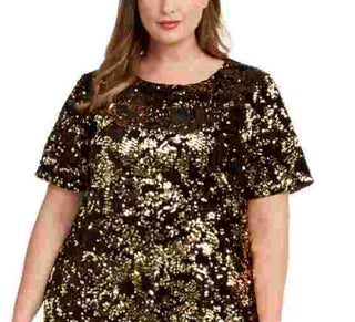 INC International Concepts Women's Plus Size Two-Tone Sequin Dress Gold Size 1X