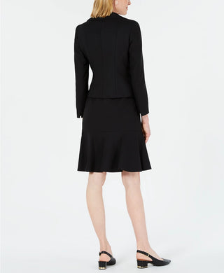 Le Suit Women's Three Button Diamond Jacquard Skirt Suit Black Size 8