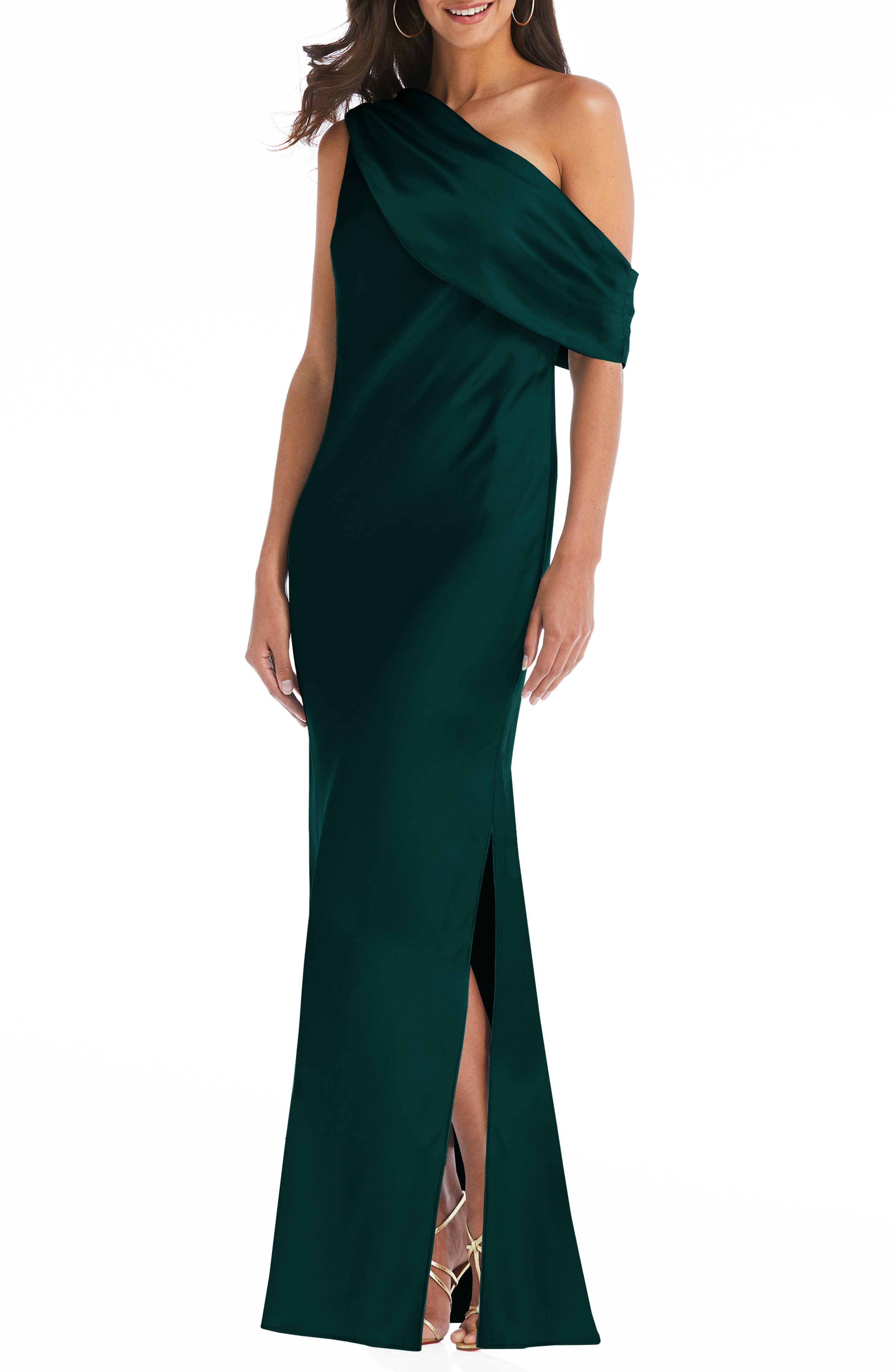 Social Bridesmaids Women's Evergreen Draped One-Shoulder Gown Size X-Small