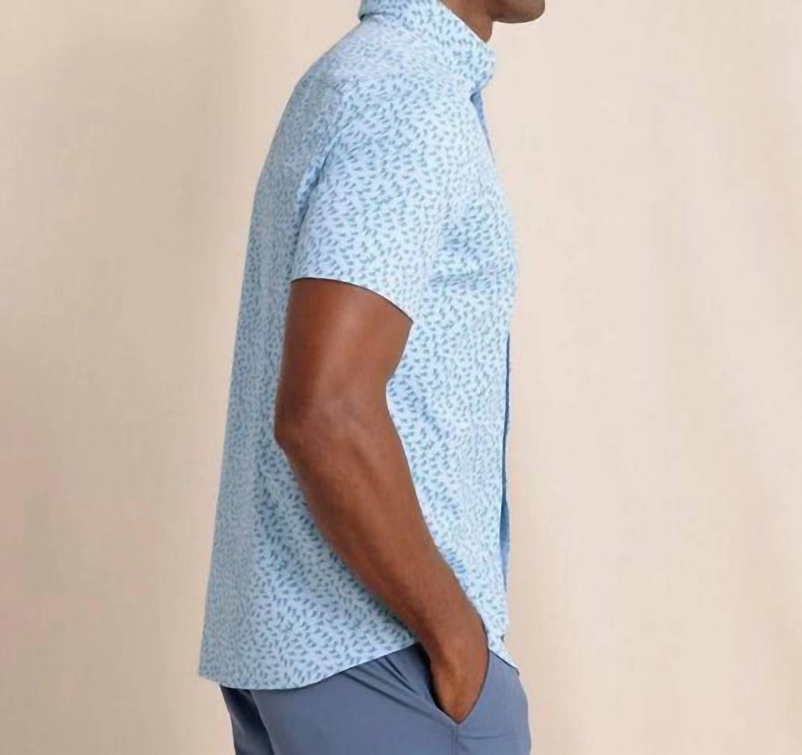 Set sail with the Fintastic Intercoastal Short Sleeve Sport Shirt, the perfect solution for your wardrobe. With classic features such as a left chest pocket, a button-down collar, and a vibrant cerulean sailfish pattern, this sport shirt will become your go-to choice for casual days at the office or weekends by the coast.