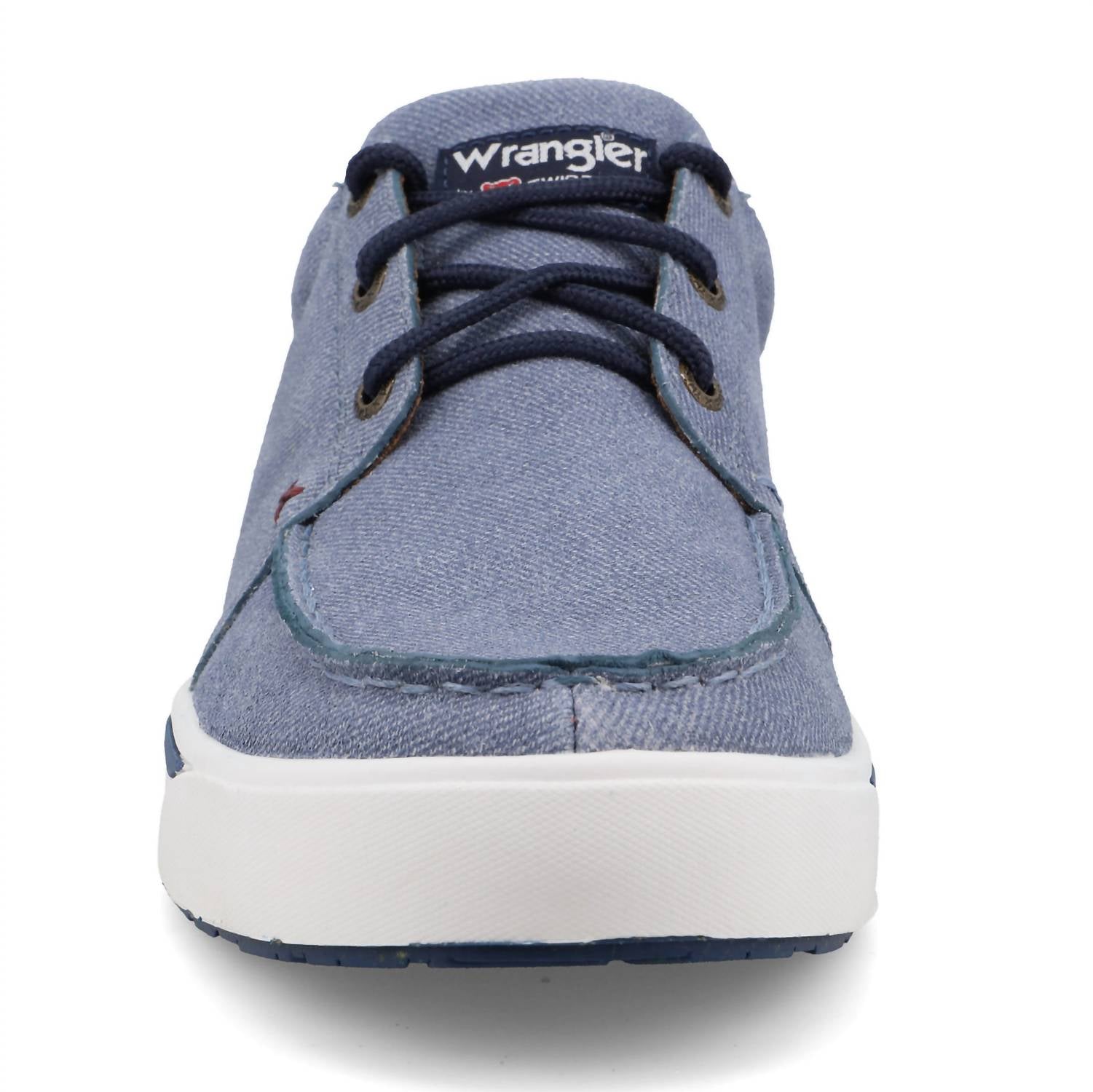 These men's Kicks casual shoes from Twisted X Wrangler Collection have a denim look leather upper with nylon laces as well as elastic gore panels on the tongue that allow the shoe to be worn without laces. They have a mesh lining with a Blend85 footbed These shoes have a round toe with a rubber outsole.