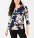 JM Collection Women's Printed Jacquard Top Blue Size X-Large