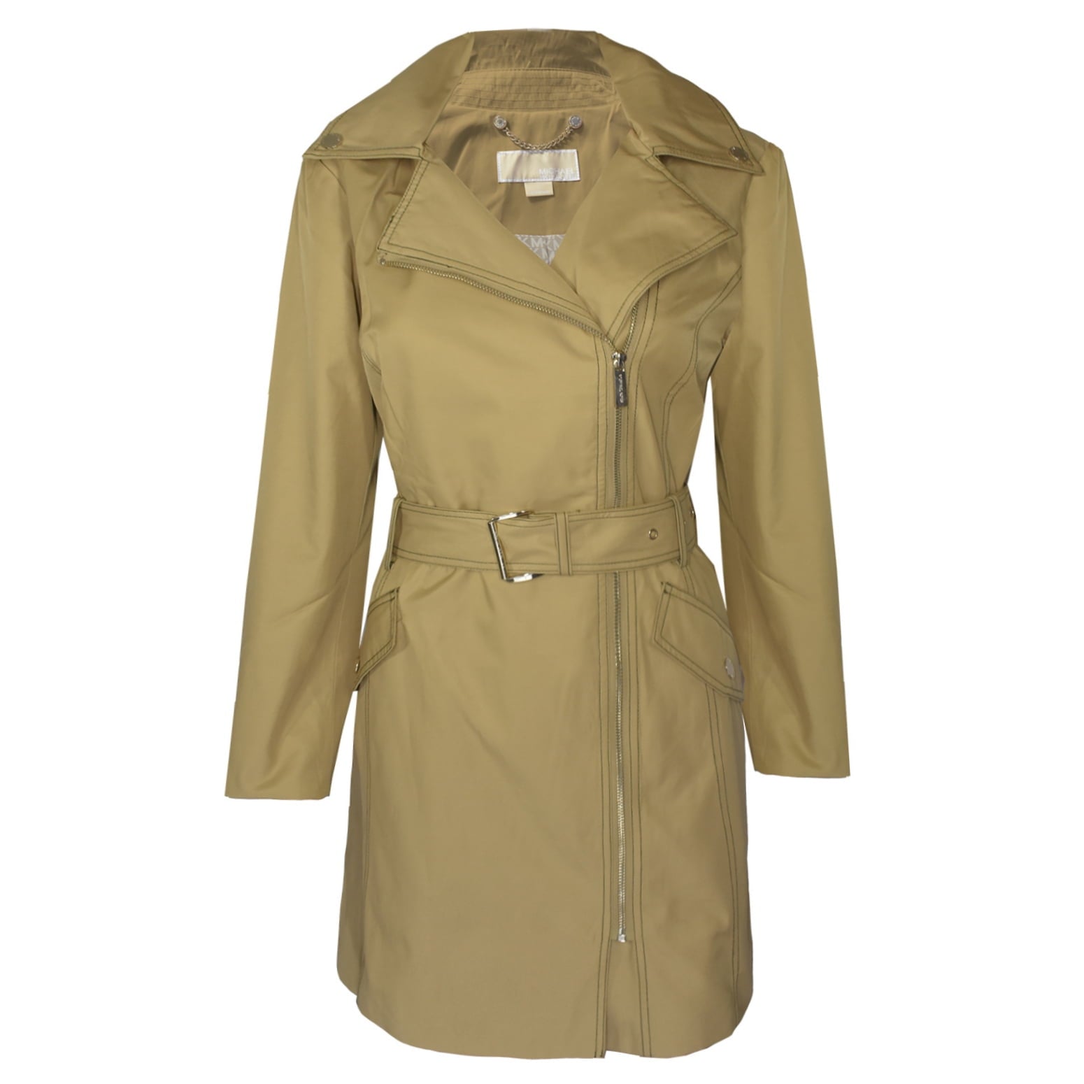 Michael Kors Women's Asymmetrical Belted Raincoat Brown Size Large