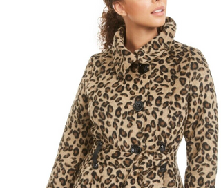 Madden Girl Juniors' Drama Animal Print Coat with Skirt Brown Size Medium