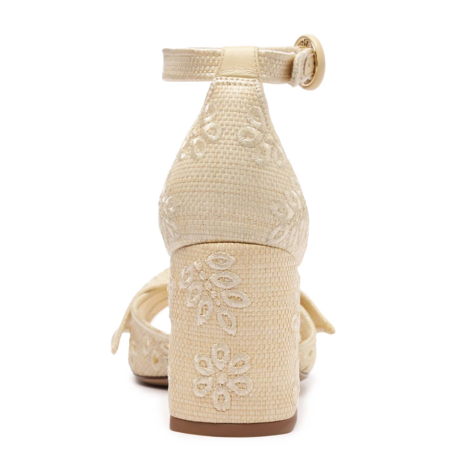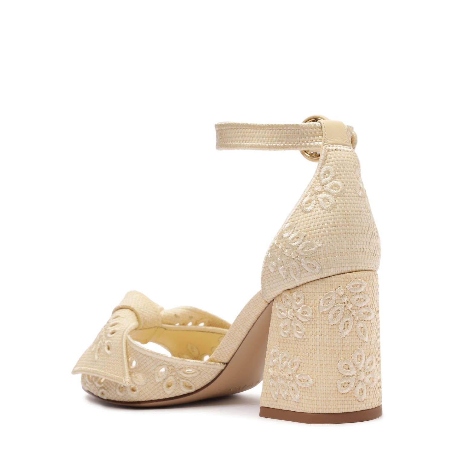 Classicly cute and all-day-wearable. We love this sandal. Elevate your summer wardrobe with the Women's Maxi Clarita Sandals by Alexandre Birman, fashioned in a creamy hue perfect for vacation style. These sandals feature exquisite embroidery on vibrant raffia paired with a sophisticated almond toe design. The mid block heel stands at 3.35 inches, offering elegance with every step. Crafted with a leather sole for durability, they highlight the trend of quiet luxury. Material: Raffia Buriti and leather. Country of origin: Information not provided.