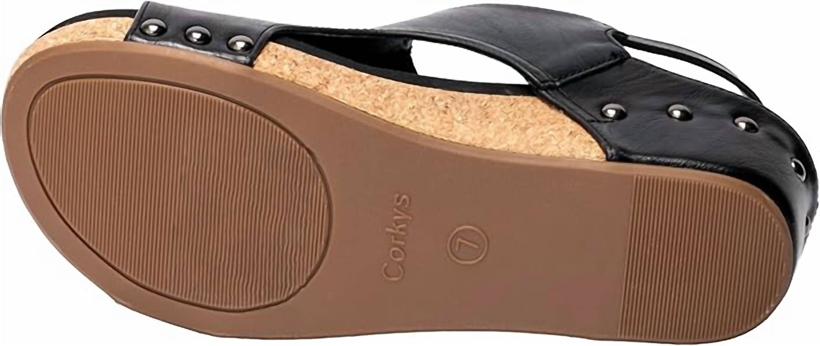 This sandal will take you from brunch to dinner and everything in between. Step into comfort and style with the Volta II Wedge Sandal by Corkys Footwear, crafted for shoe lovers who crave a chic wedge look with all-day comfort. Made from black smooth faux leather, these sandals feature a 2-inch wedge heel for a versatile and stylish lift. The EVA-cushioned insole and durable rubber outsole ensure comfort and stability. Perfectly designed with a round toe, this sandal offers unlimited styling options for any occasion.