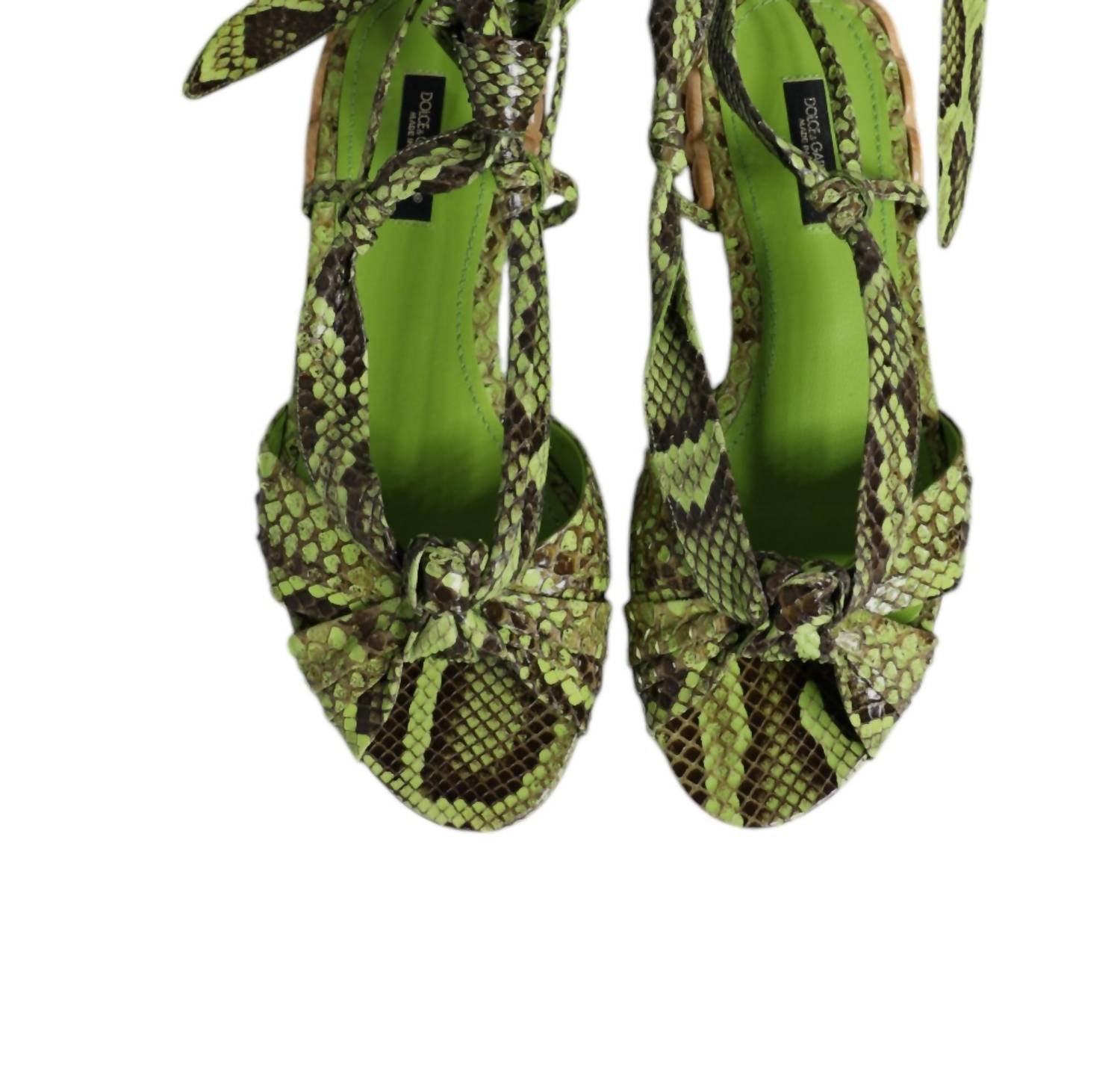 Classicly cute and all-day-wearable. We love this sandal. Experience vacation style with the Women's Ankle Wrap Sandals Shoes by Dolce & Gabbana, crafted from 100% Molurus Python for ultimate exclusivity. These green sandals feature an elegant ankle wrap and are completed with a leather sole and round toe. Elevate your boho chic summer wardrobe with these flat heel sandals made in Italy.