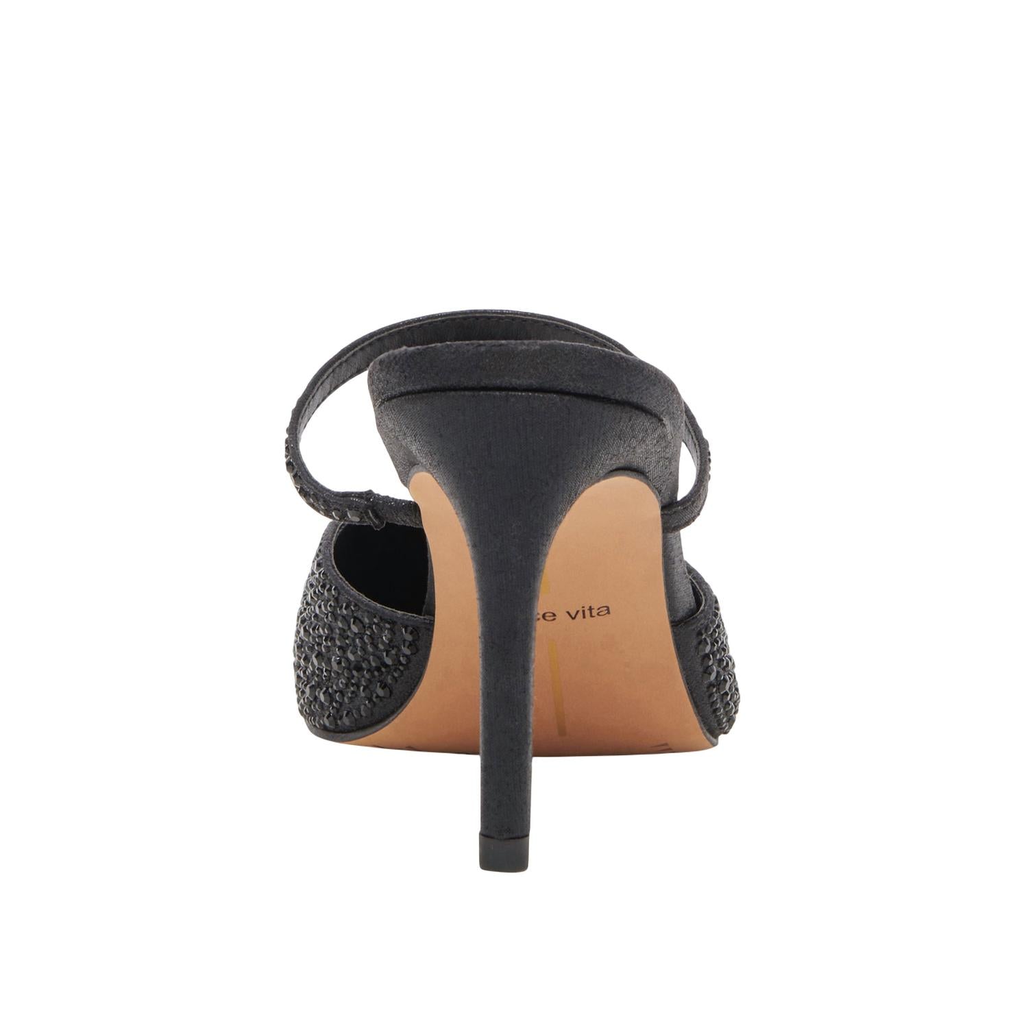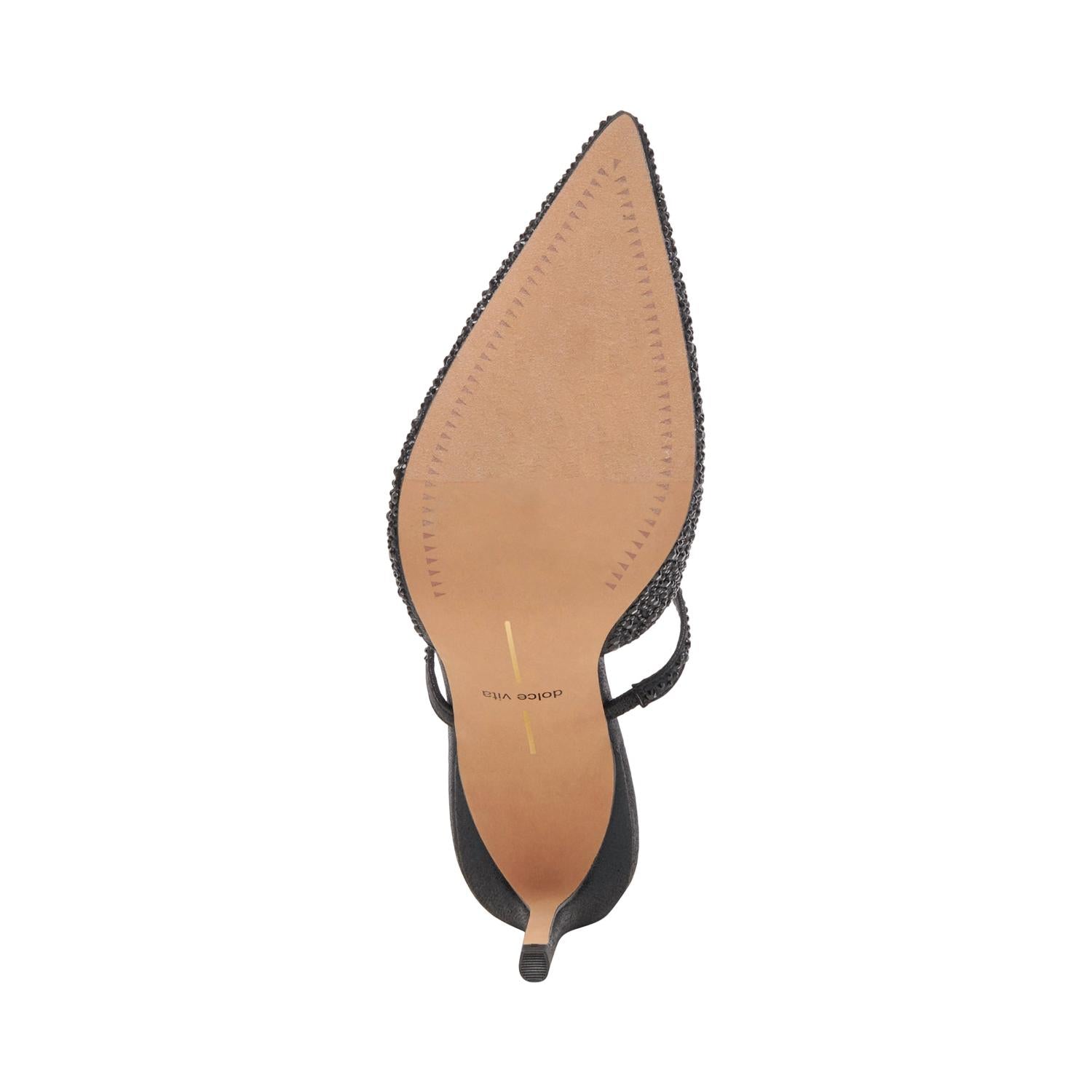 Classicly cute and all-day-wearable. We love this sandal. Tapered heel and pointed silhouette with crystal embellishments on translucent mesh. Textile and crystal upper, recycled synthetic outsole, synthetic lining, and sock. 3.3" Heel height.