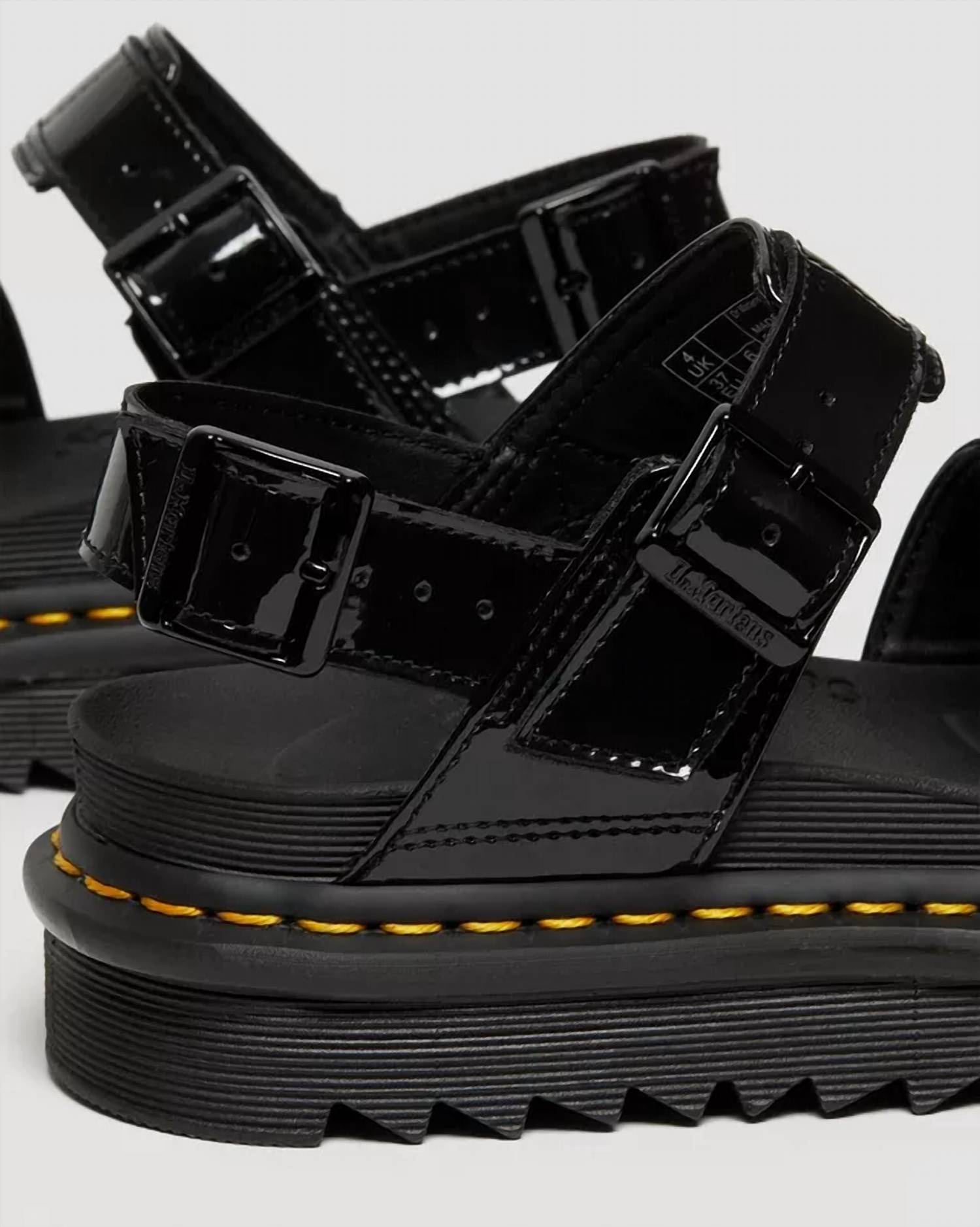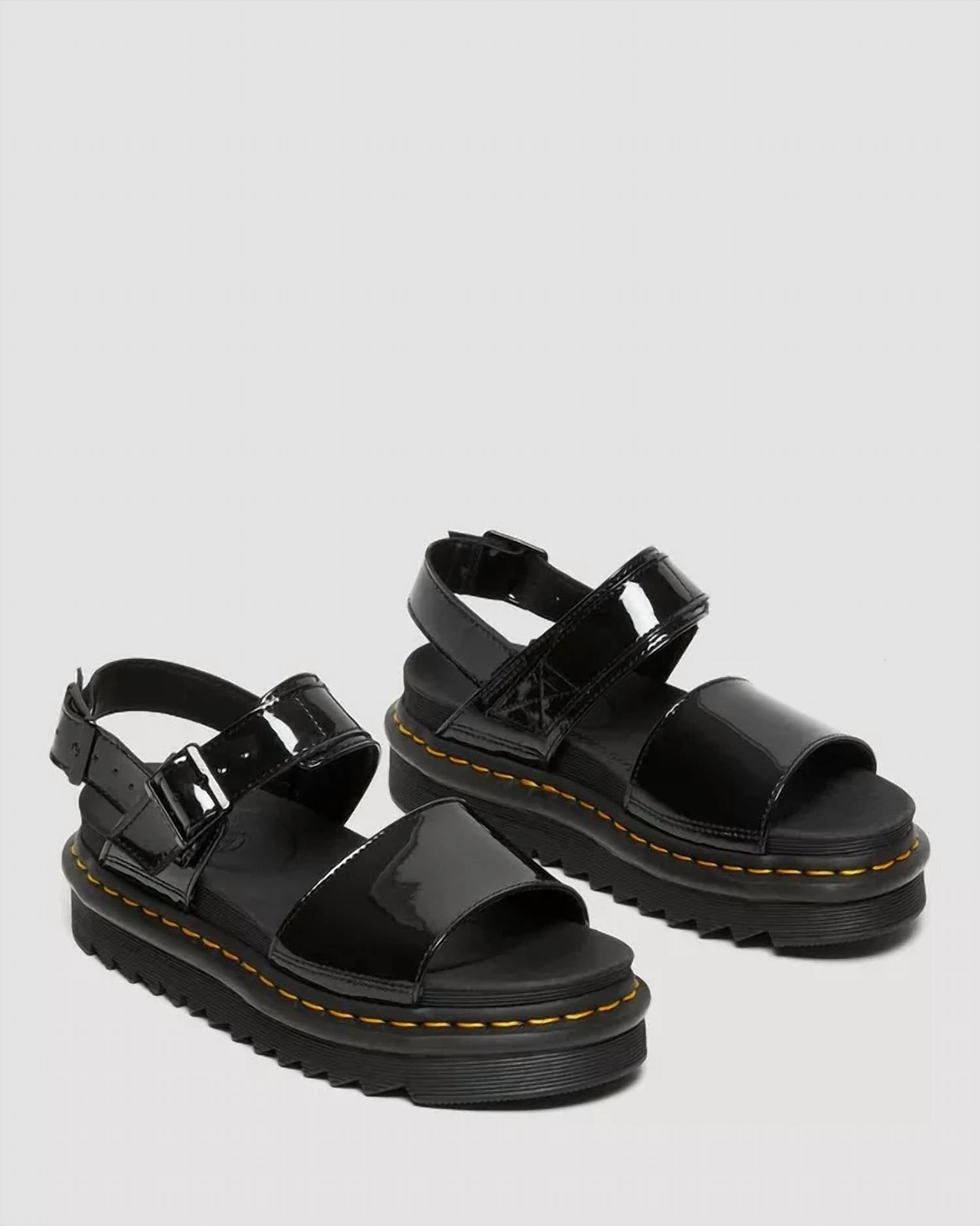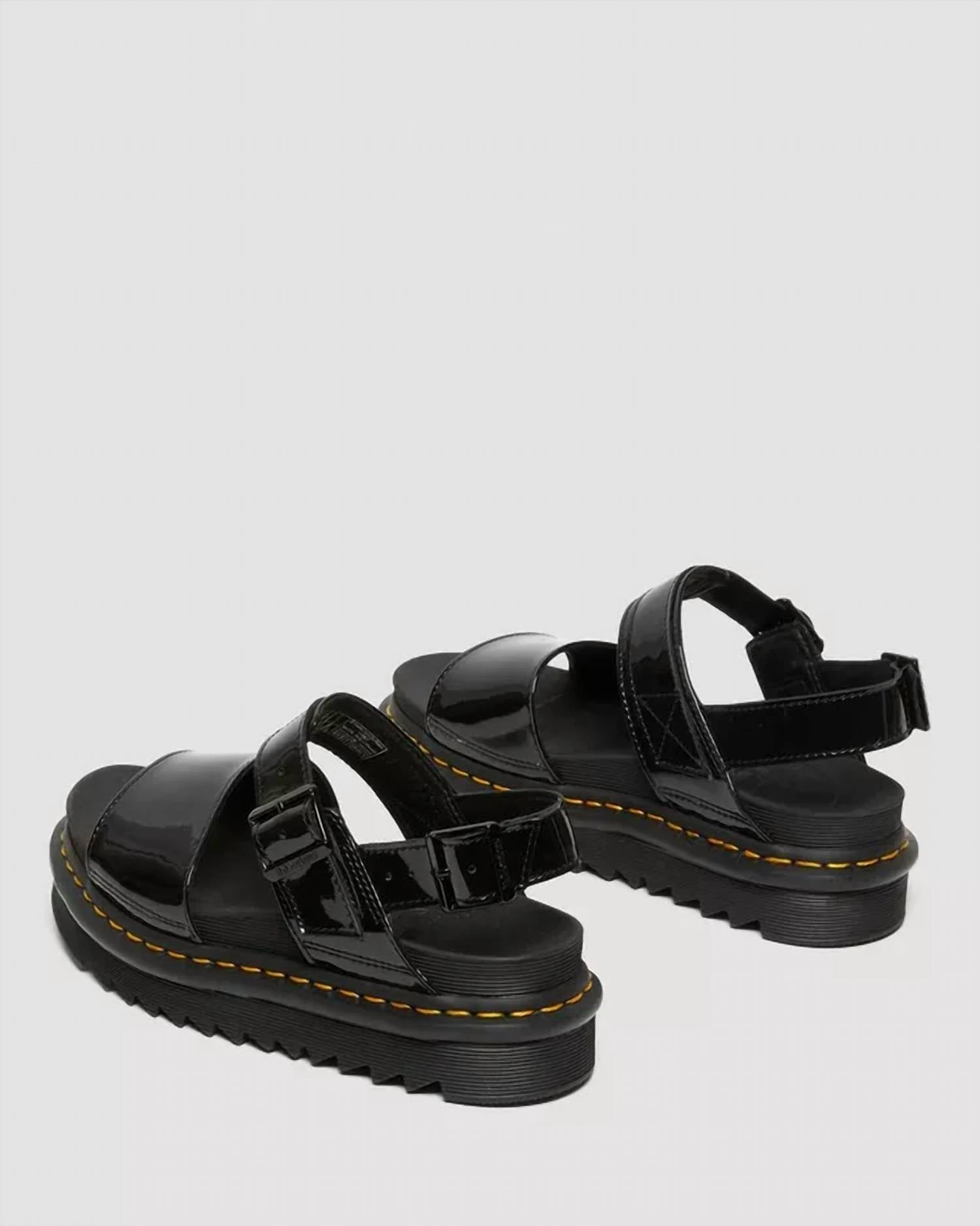 Classicly cute and all-day-wearable. We love this sandal.Sandals: the DM’s way. The Voss is loaded with tons of attitude and our unmistakable DNA. Built with two adjustable straps, the women's sandals sit a super lightweight sole with a ripple tread, held in place with a sturdy Goodyear welt.Adjustable strapRetains classic Docs DNA: grooved edges and visible welt stitchingFor half sizes, we recommend going down a sizePlatform height: 1 1/2 in; Heel height: 1 7/8 in