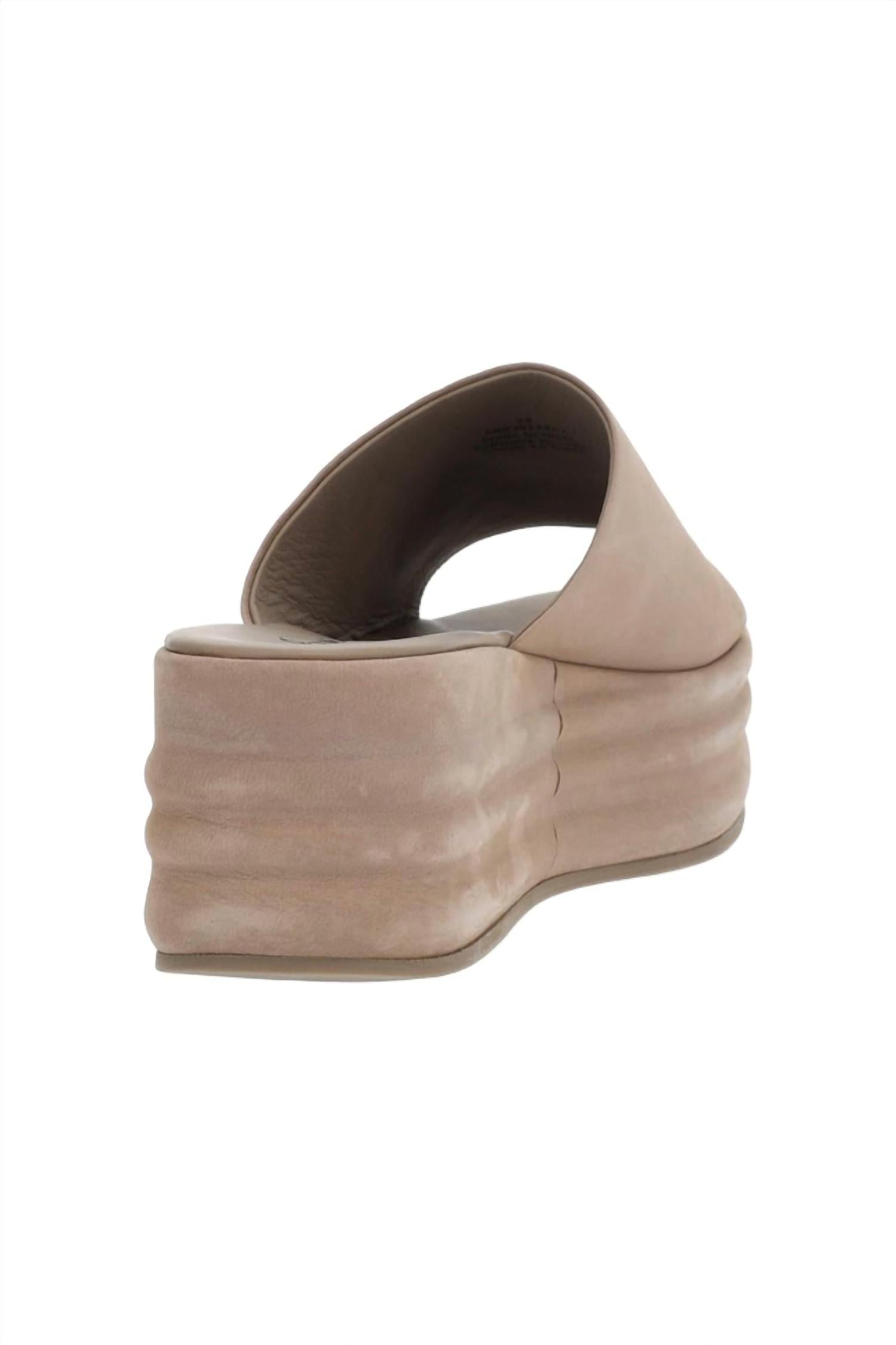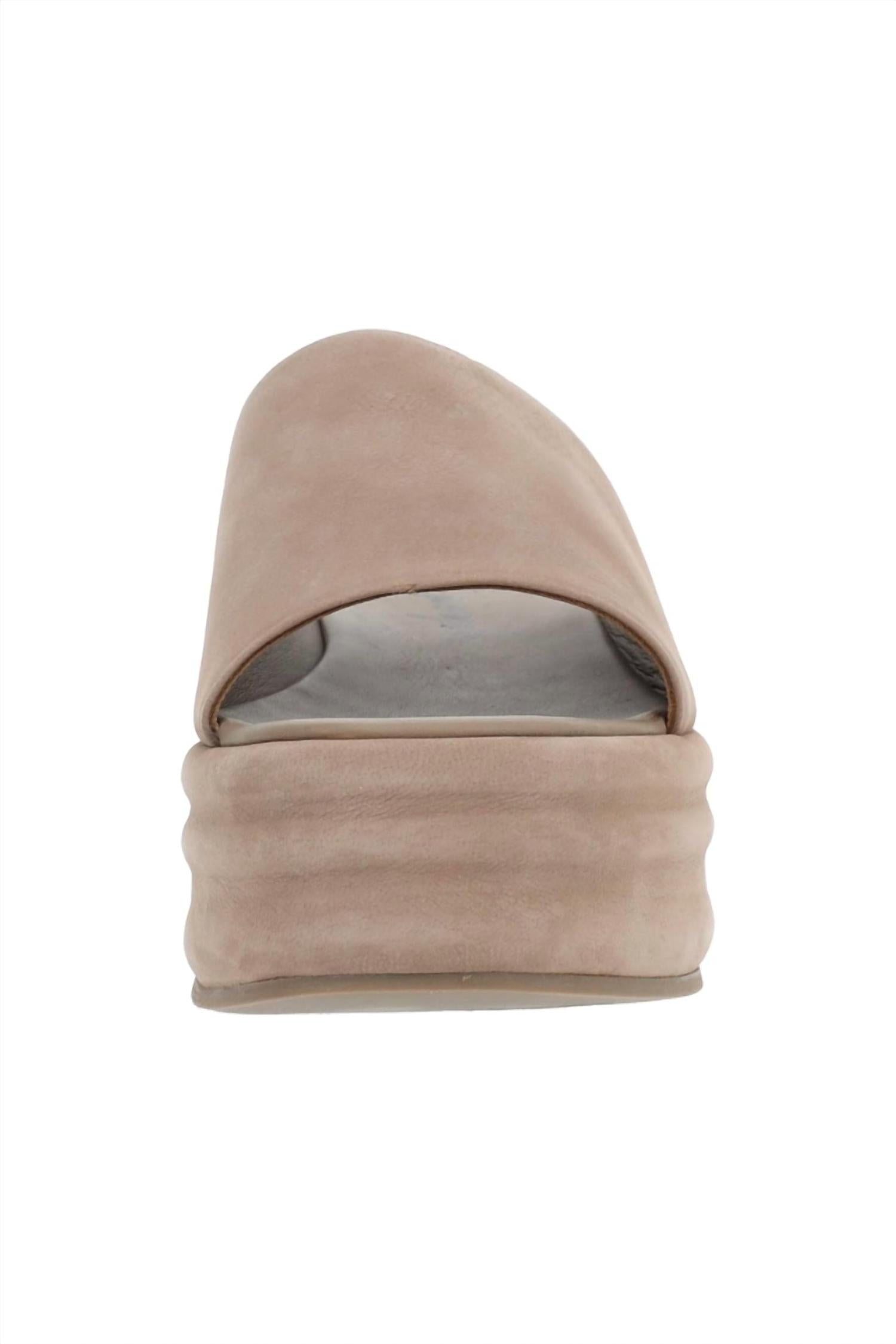 Embrace minimalist summer style with the Women's Harbor Flatform Sandal by Free People in Fawn Grey. These sandals boast an open-toe design and a mule-style with a textured platform heel, complemented by a wide leather strap for a chic, retro vibe. The cushioned insole ensures comfort with every step. Expertly crafted from premium materials, these lightweight sandals are perfect for vacations and everyday wear.