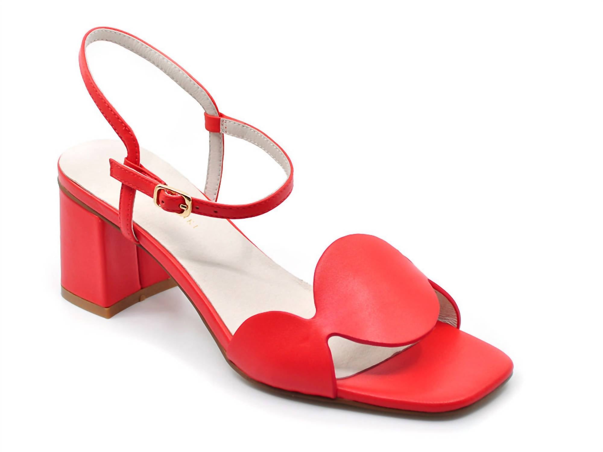 Elevate your style with the Women's Sphere Sandal by Koko + Palenki, a chic choice featuring adjustable ankle strap closure for a secure fit. Boasting a leather upper and lining, this elegant sandal includes a comfortable cushioned footbed and stands on a 2 1/2" platform heel, perfect for dinners and spring outings. Its playful red hue and distinctive circle design make it ideal for a flirty, trendsetting look. Imported with care, this sandal runs true to size and sports a durable rubber outsole and sophisticated squared toe shape.
