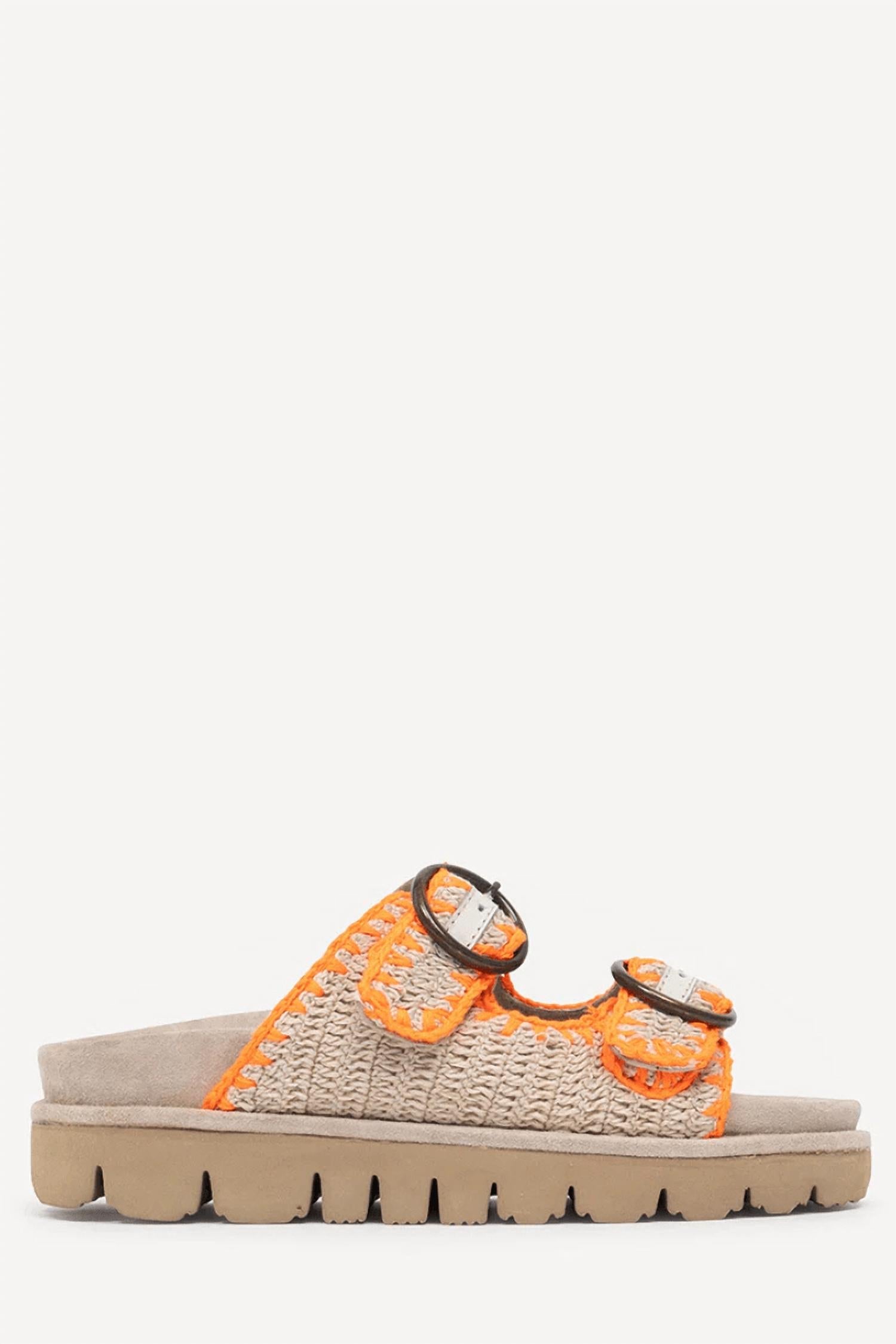Flowy dresses, cropped pants, and even jumpsuits... this sandal works with them all! Step into summer with Laidback London's Women's Clay Sandal in vibrant orange, a perfect blend of craftsmanship and comfort. These sandals feature a handwoven crochet upper for breathability and style, accompanied by a soft suede leather lining and footbed for luxurious comfort. With adjustable double-buckle straps and a chunky outsole, they ensure a custom fit and support while providing durability ideal for relaxed vacations or boho chic outings. Designed as flat heels with a round toe shape, these sandals are crafted for effortless elegance on laid-back days.