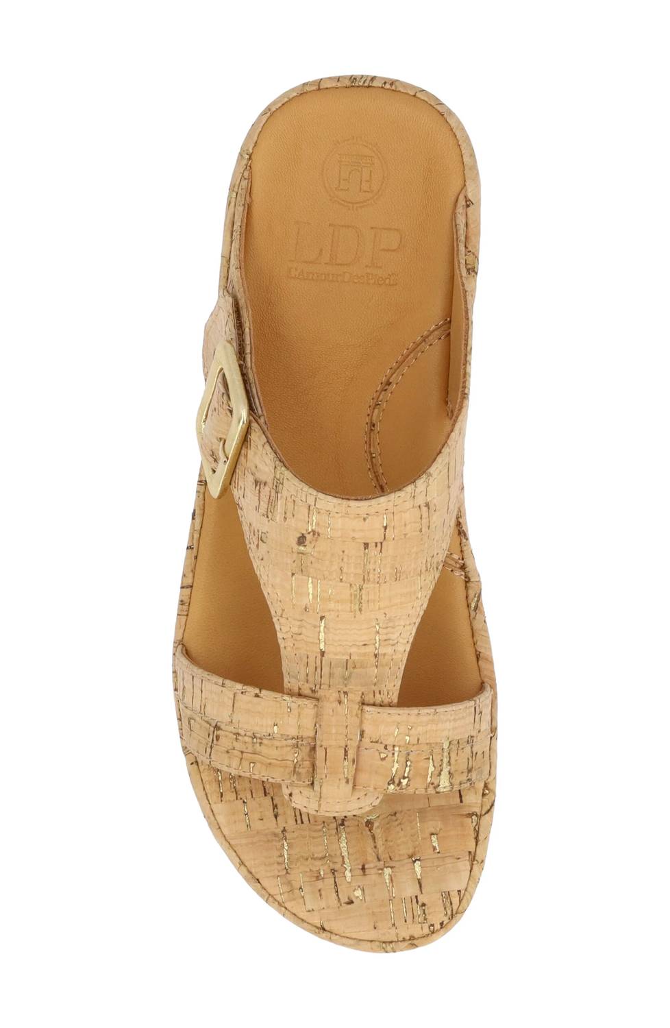 This sandal will take you from brunch to dinner and everything in between. Discover the L'amour Des Pieds Women's Verick Sandal, a blend of style and comfort perfect for your beach day ensemble. Featuring an open toe and crafted with soft natural/gold cork straps, these sandals boast a sporty synthetic sole and a low 1 3/4" heel. An adjustable hook-and-loop strap ensures a secure fit, while the memory foam-cushioned insole with arch support adds all-day comfort. With a medium width and leather lining, these sandals cater to streetwear trends, making them a chic addition to your summer wardrobe.