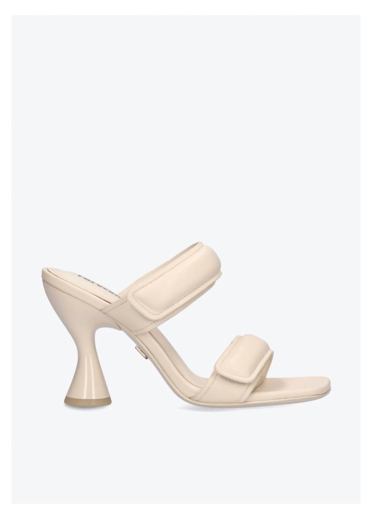 Step into sophistication with the Women's Treviso Heeled Sandals by LOLA CRUZ. Crafted from premium leather, this off-white pair boasts a chic open toe design and an elegant spool heel, perfect for evening events. Whether for workwear or a special occasion, these sandals effortlessly elevate your look.