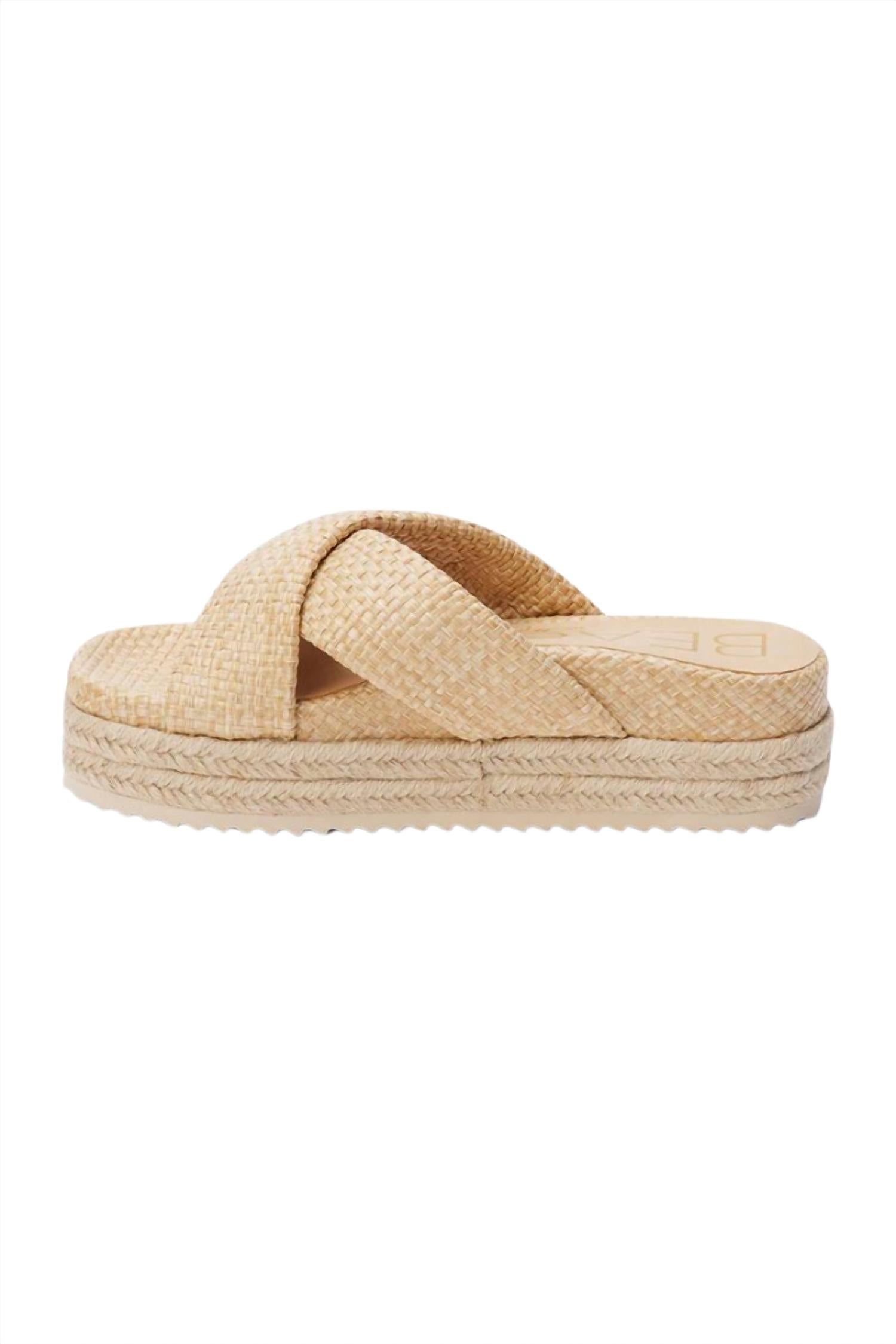 Flowy dresses, cropped pants, and even jumpsuits... this sandal works with them all! Experience the perfect blend of style and comfort with the Matisse Woven Platform Sandal in a Natural hue. Featuring a chic raffia upper and a convenient slip-on style, these sandals are designed for easy wear. The 2-inch (5.1 cm) platform heel ensures a fashionable lift while the padded insole offers superior cushioning. Ideal for both city outings and beach strolls, these sandals are imported and crafted with a manmade outsole for durability.