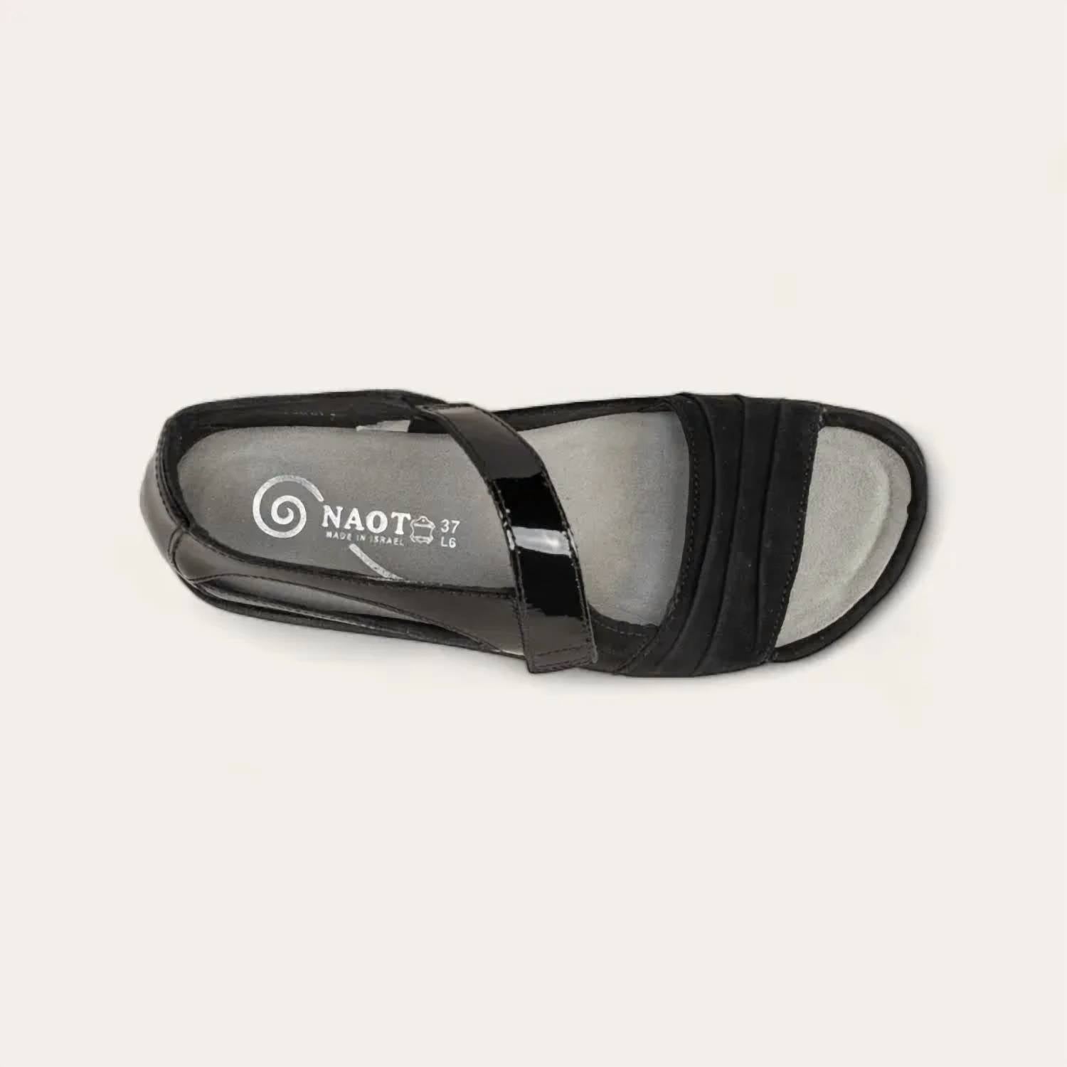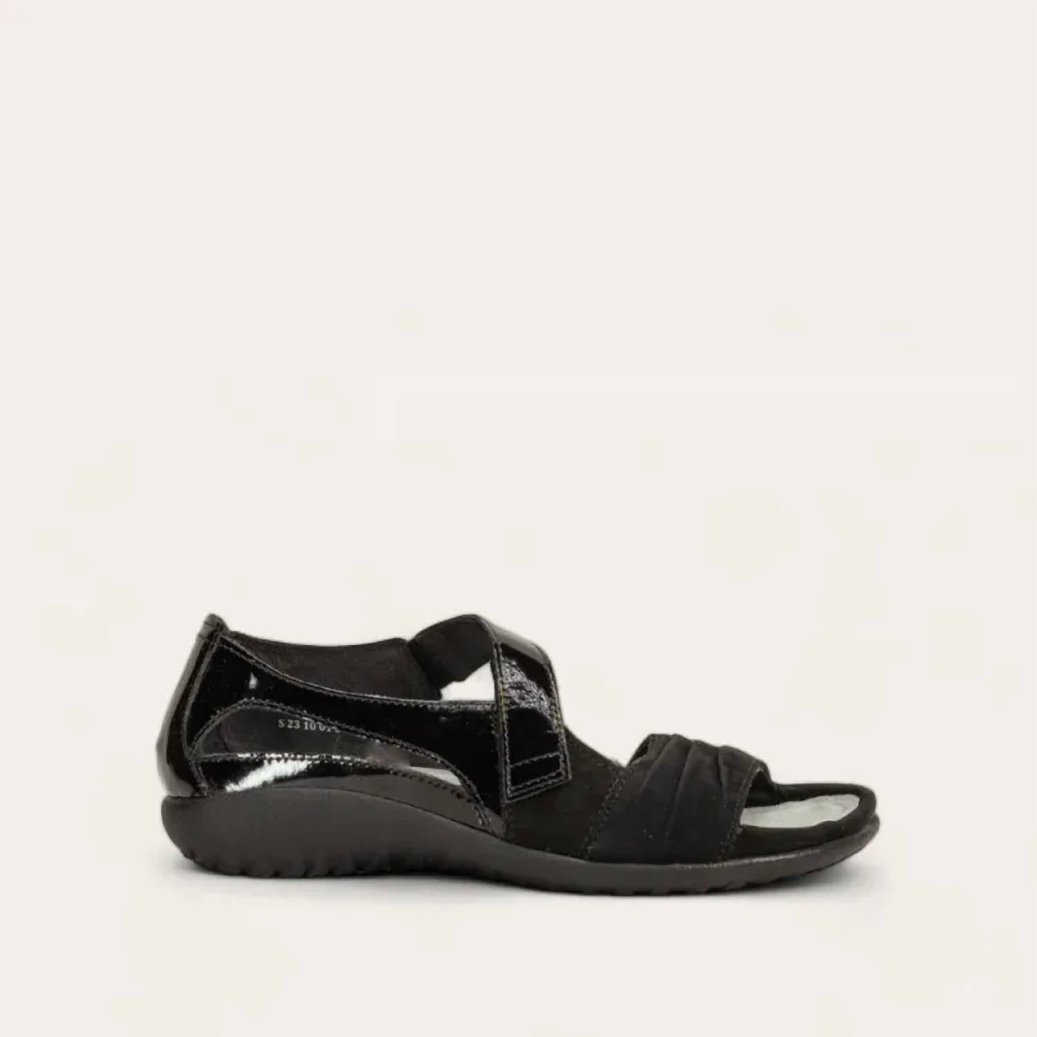 Flowy dresses, cropped pants, and even jumpsuits... this sandal works with them all! Meet Papaki sandal – your new go-to for fashion-forward comfort that you'll love to wear all day long. With its fashionable design featuring a padded front strap and contrasting ruched detailing, the Papaki adds a stylish flair to any outfit. But it's not just about looks – this sandal is designed for ultimate comfort. Featuring a padded heel cup and a convenient hook and loop closure at the instep, you'll enjoy a secure and comfortable fit with every step. Crafted with Naot's removable, anatomic cork & latex footbed wrapped in pampering suede, these shoes mold to the shape of your foot with wear, ensuring personalized comfort. The Koru Collection features a 1" polyurethane sole which is extremely lightweight, durable & slip resistant.This collection uses a hand-sewn Strobel construction making it strong and flexible. Plus, it's American Podiatric Medical Association (APMA) accepted for promoting good foot health. The Papaki fits our Koru Footbed, ensuring even more support and comfort tailored to your feet. Product Information Fit:Runs large, half sizes should size down Sole Material:Polyurethane Heel Height:1 " Width:Medium Slip Resistant:Yes Orthotic Friendly:Yes Removable Footbed:Koru