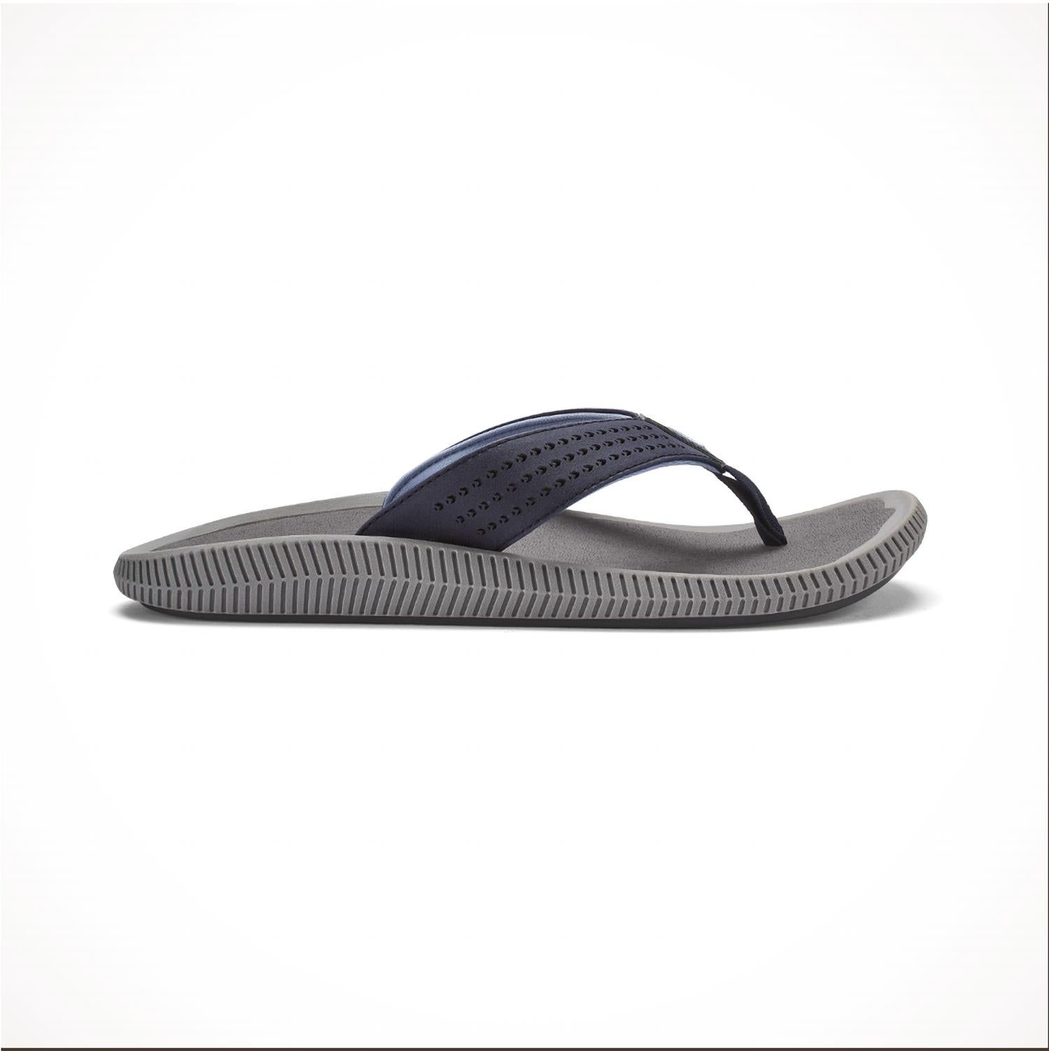 Experience ultimate comfort and versatility with the Men's Ulele Sandals by OluKai, perfect for a beach day in Blue Depths. These sandals feature laser-cut synthetic straps with a water-resistant microfiber lining and a soft nylon toe post for ultra-comfy wear. The compression-molded EVA midsole paired with a smooth drop-in ICEVA footbed offers an anatomical fit, ensuring all-day comfort. Equipped with a non-marking 'Wet Grip Rubber' outsole, these sandals provide enhanced traction with their unique kapa-art lug design and razor siping, making them ideal for summer adventures.