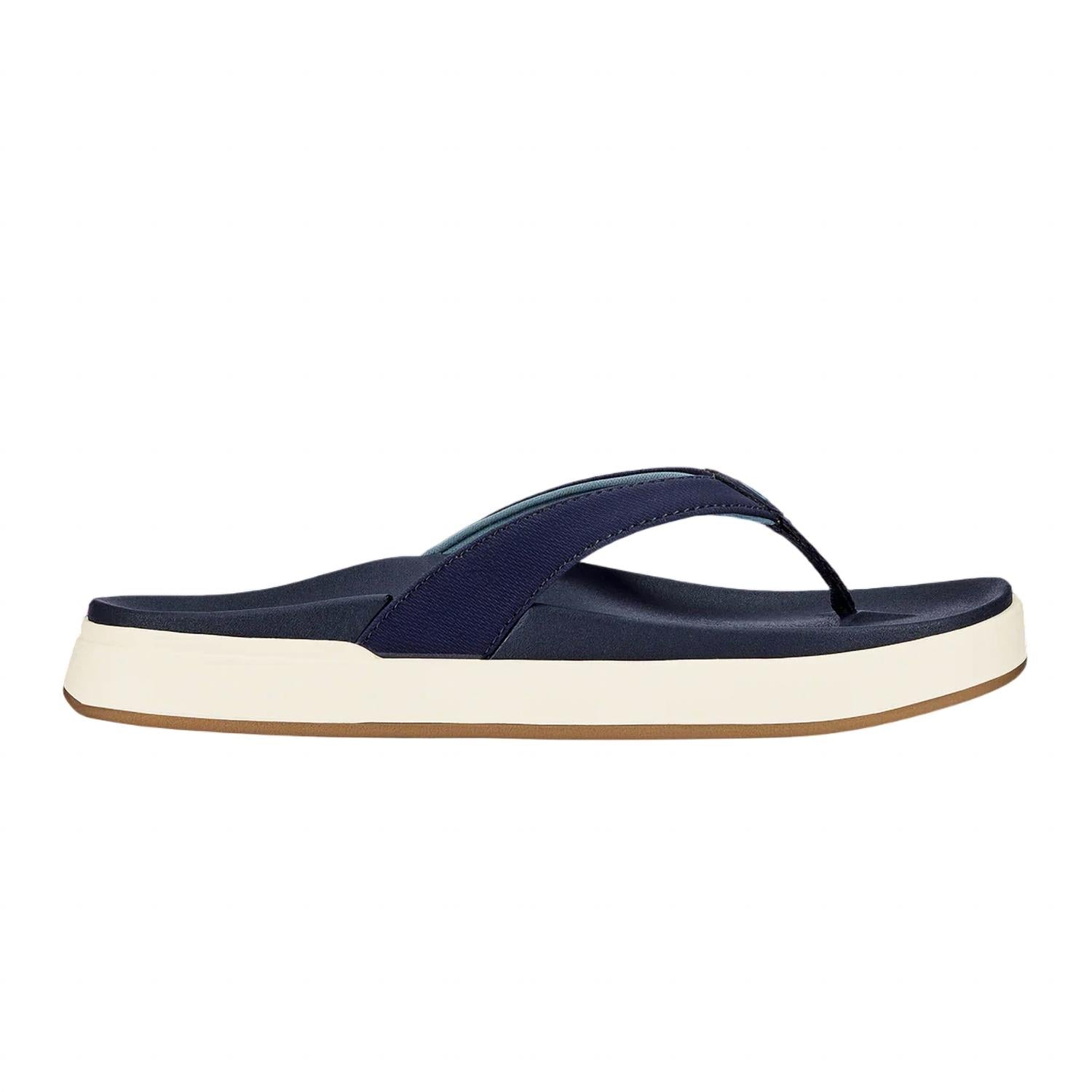 Classicly cute and all-day-wearable. We love this sandal. Step out in style with the Women's Nuʻ A Piʻo Beach Sandal by OluKai, an innovative fusion of sneaker comfort and sandal design. Crafted for versatility, this sandal in Trench Blue features a minimalist platform silhouette and a comfortable round toe, perfect for a beach day. Its thick sole and water-friendly materials ensure you enjoy your summer adventures with ease. Ideal for those seeking both style and function in their footwear.
