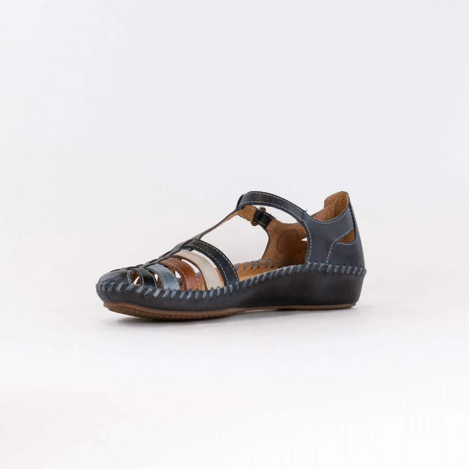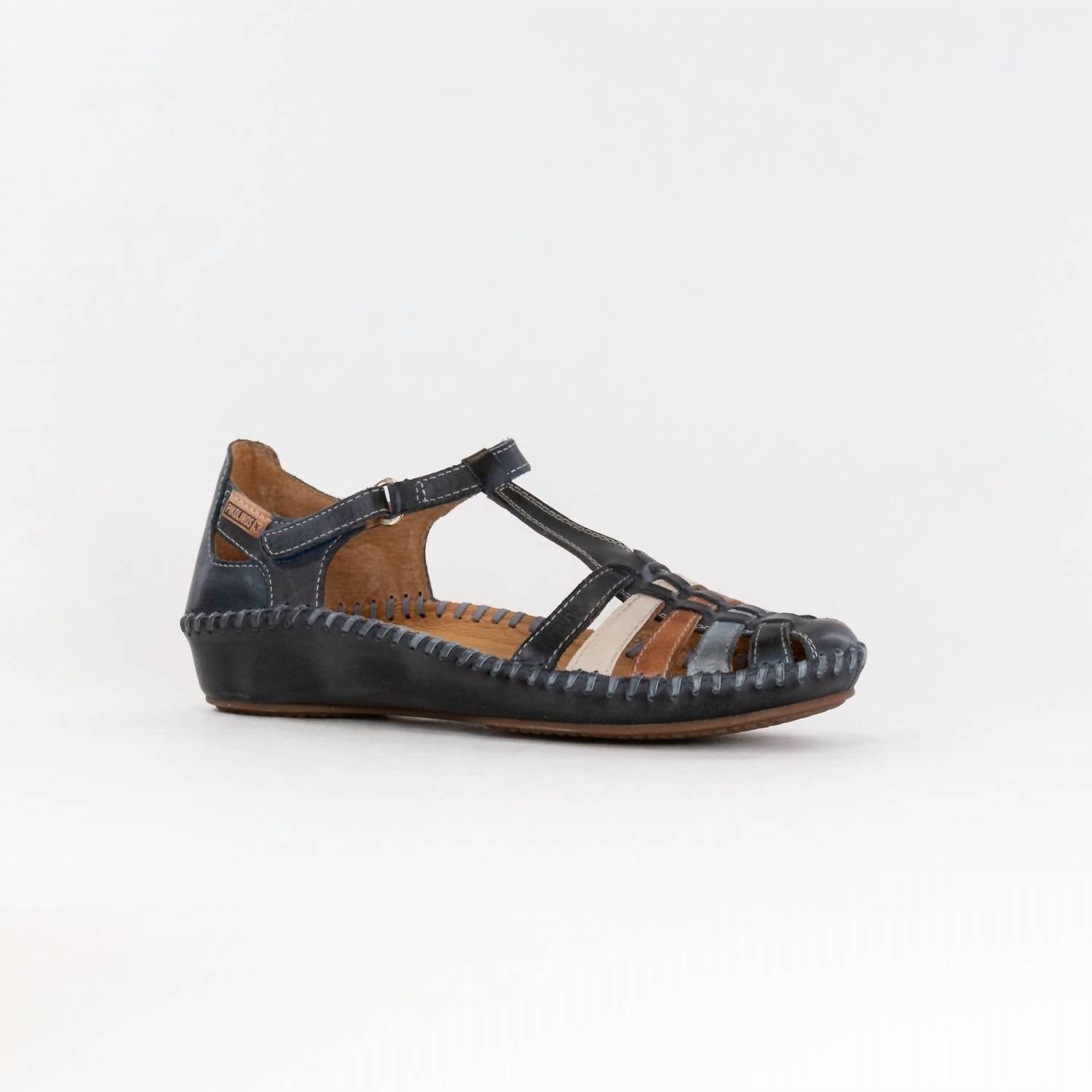 Step into chic comfort with the Women's P. Vallarta Sandals by PIKOLINOS, crafted in a rich hue. These sandals feature a low 3 cm 1.2'' wedge heel and a convenient hook and loop closure for easy wear. The upper is made of 100% calfskin leather, complemented by an inner lining of pig skin leather, all atop a synthetic sole for durability. Embrace a fashionable look without sacrificing comfort, ideal for adult women seeking style and convenience.