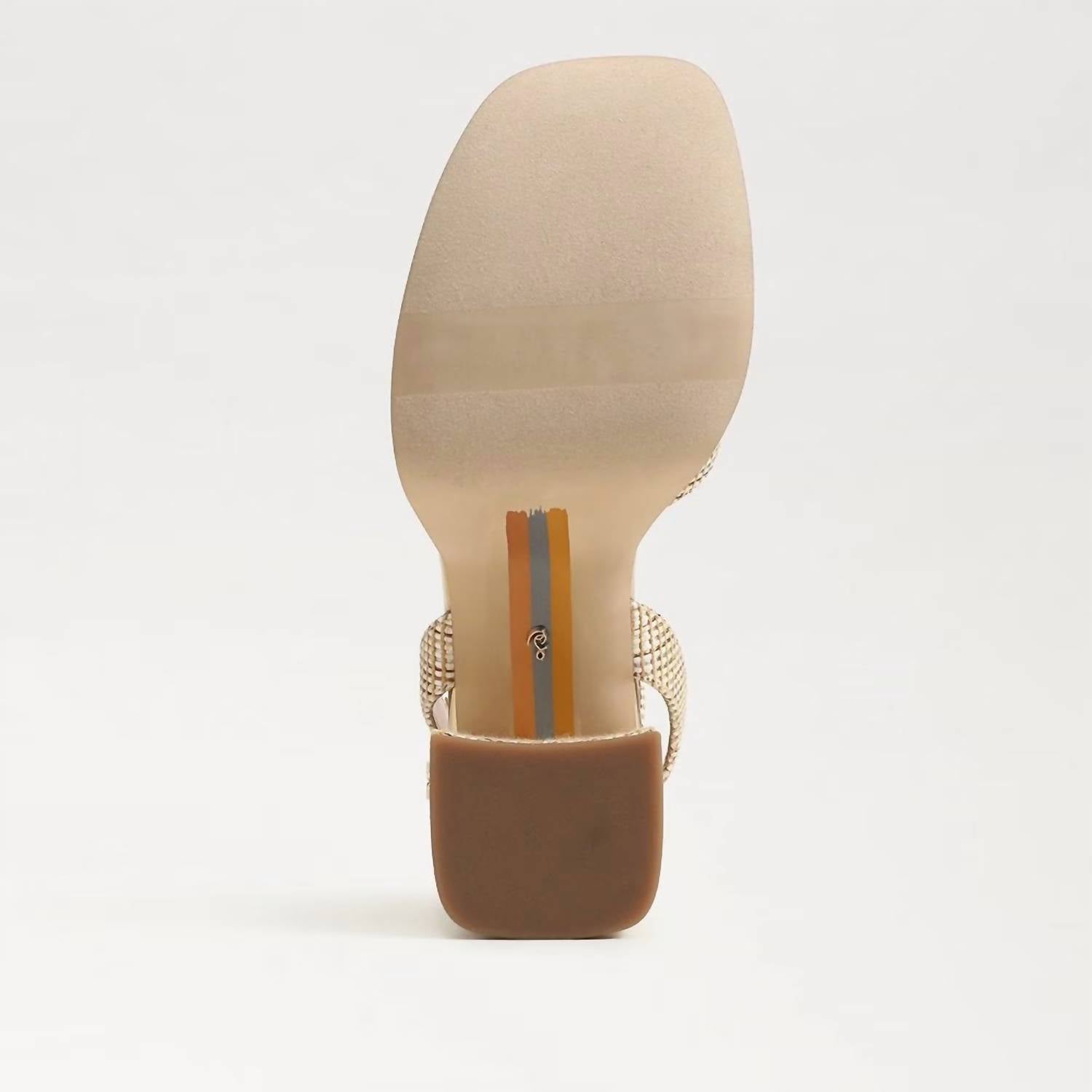 The perfect height for day to night. Step into style with the Women's Reese Platform Heel Sandal by Sam Edelman, offering a premium blend of casual elegance in a versatile sand hue. Featuring a chic woven texture with a high 4-inch block heel, this sandal is crafted from fabric and other materials. It showcases an open toe design and a convenient buckle closure for secure wear. Ideal for summer outings from brunch to evening events, its rubber insole ensures comfort throughout the day.
