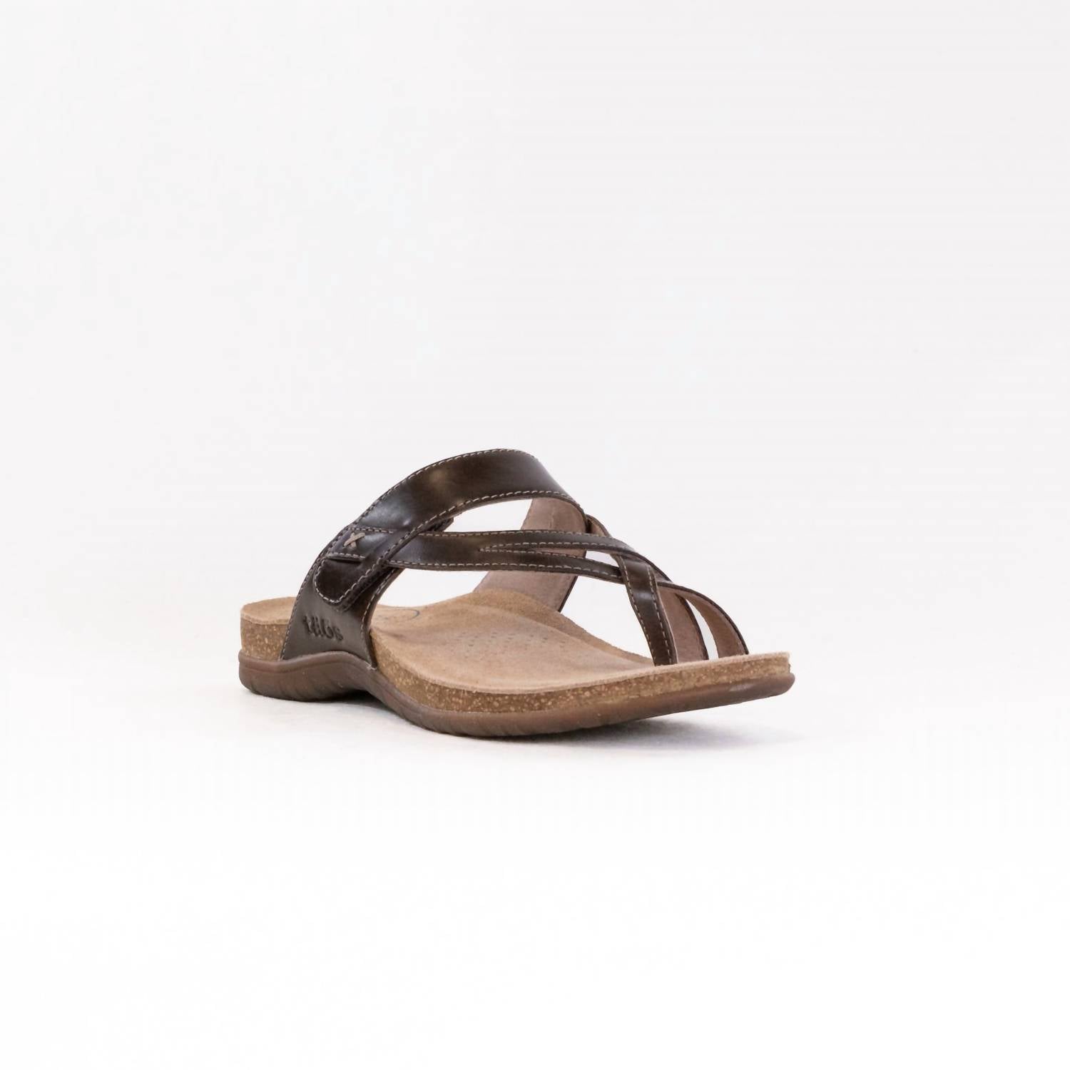 Classicly cute and all-day-wearable. We love this sandal. Discover the Women's Perfect Sandal by Taos in a warm mocha hue, crafted for flexibility and everyday elegance. This leather toe loop thong sandal boasts a strappy design, adjustable hook and loop strap closure, and premium leather lining. With a lightweight cork-latex midsole and a flexible rubber outsole, it provides exceptional arch and metatarsal support. Care for these sandals easily by buffing with a leather cleaner or polish, then wiping with a dry cloth. The heel stands at 0.5 inches, offering understated comfort for your spring outings. Weight per shoe: 6.4 oz.