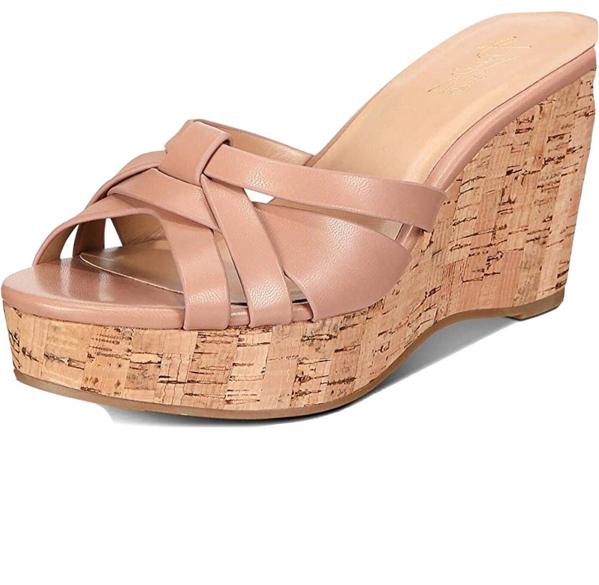 Thalia Sodi Women's Round Toe Wedge Slip On Slide Sandals Brown Size 10 M
