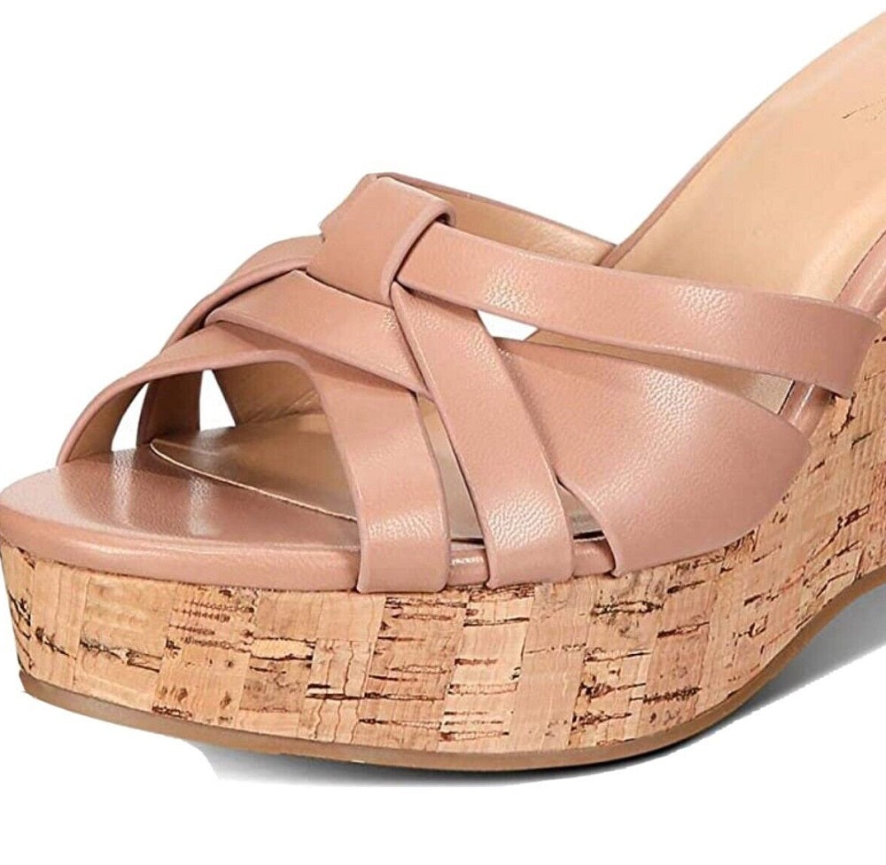 Thalia Sodi's Jaylen wedges lend retro-inspired height to both dressy skirts and skinny jeans with woven crisscross straps and a cork-like platform heel.| 3-1/2 wedge heel; 1-1/4 platform| Round-toe slip-on platform wedge sandals| Cushioned insole for added comfort| | Manmade upper; manmade lining; manmade sole| Imported