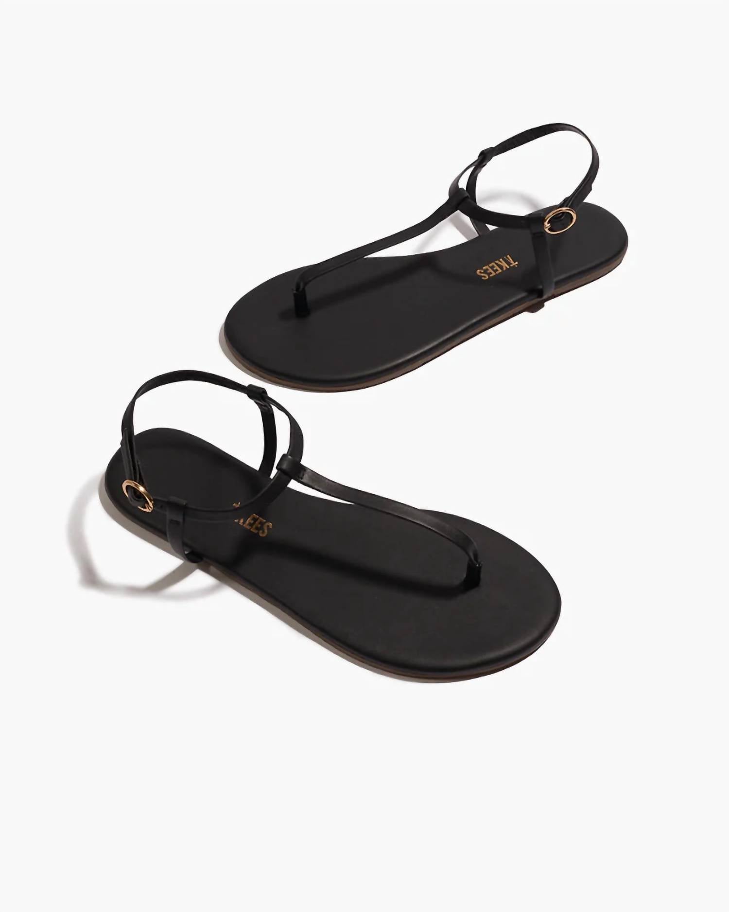 This sandal will take you from brunch to dinner and everything in between. Step into comfort with the Women's Mariana Sandals by TKEES, an embodiment of effortless summer style. Constructed from high-quality leather, these black sandals feature a round toe design and a flat heel, perfect for boho chic vacations. Available in sizes 5, 7, 8, 9, and 10, these sandals are ideal for keeping cool and stylish. Co-founded by Carly and Jesse Burnett, TKEES brings you a modern classic that pairs seamlessly with any warm-weather wardrobe.