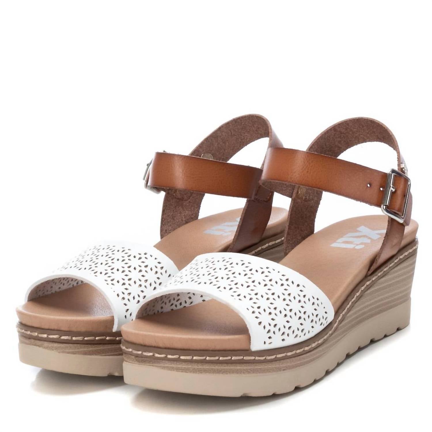 Flowy dresses, cropped pants, and even jumpsuits... this sandal works with them all! Step out with confidence in the Women's Wedge Sandals by Xti, offered in a chic white color. These sandals feature a synthetic upper with a faux leather finish and a stylish die-cut motif, complemented by a metal buckle closure for easy adjustment. Standing on a 6 cm wedge heel with a non-slip sole, they provide both comfort and a trendy lift. Proudly certified vegan by PETA, these casual sandals prioritize ethics and style in every step.