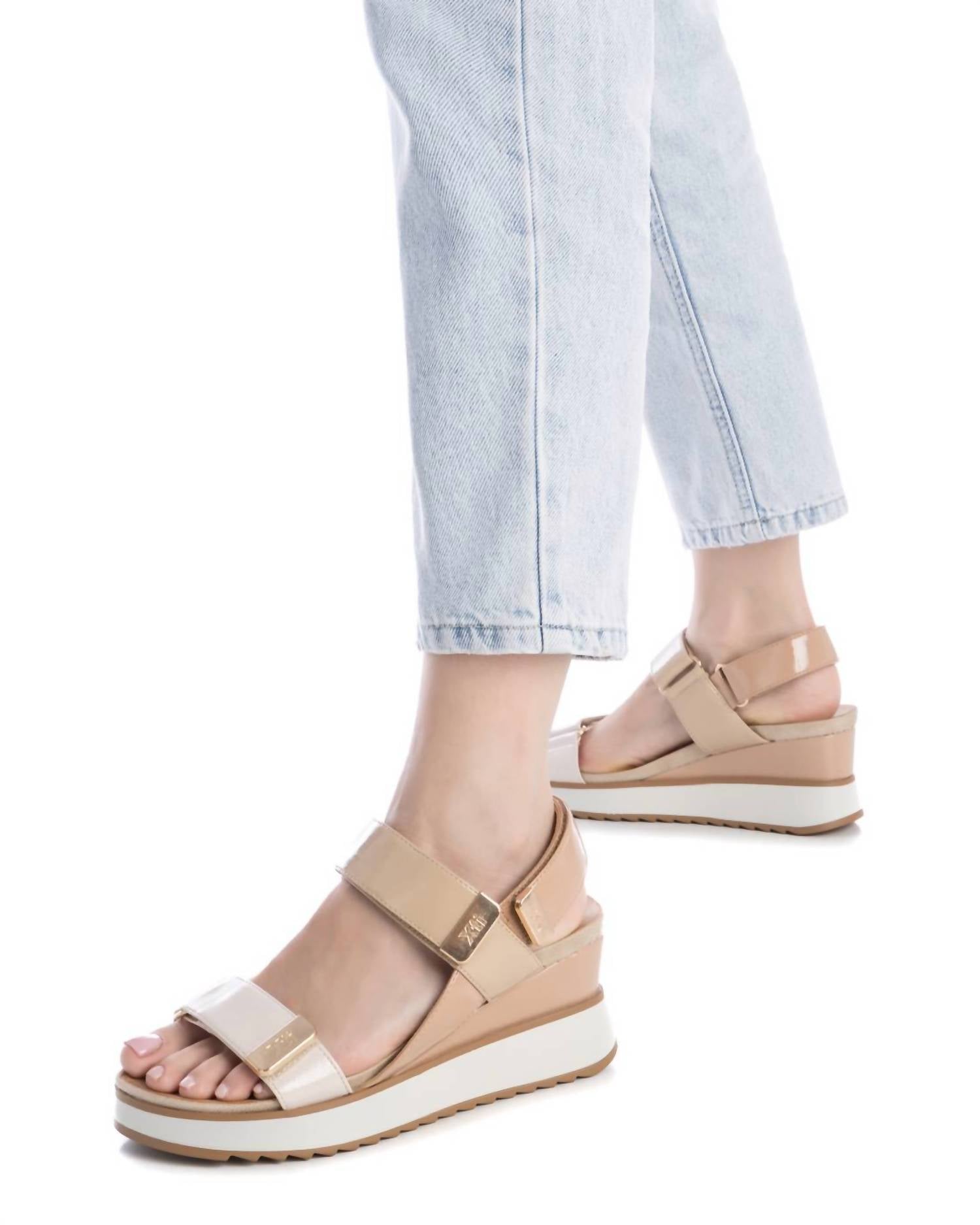Step into style and comfort with Xti's Women's Wedge Sandals, presented in a chic hue. These sandals feature a fashionable wedge heel that measures mid-height, providing a perfect lift without compromising comfort. With a versatile round toe design, these sandals seamlessly adapt to both casual and elegant outfits. Made for durability and style, they are the go-to choice for any outing.