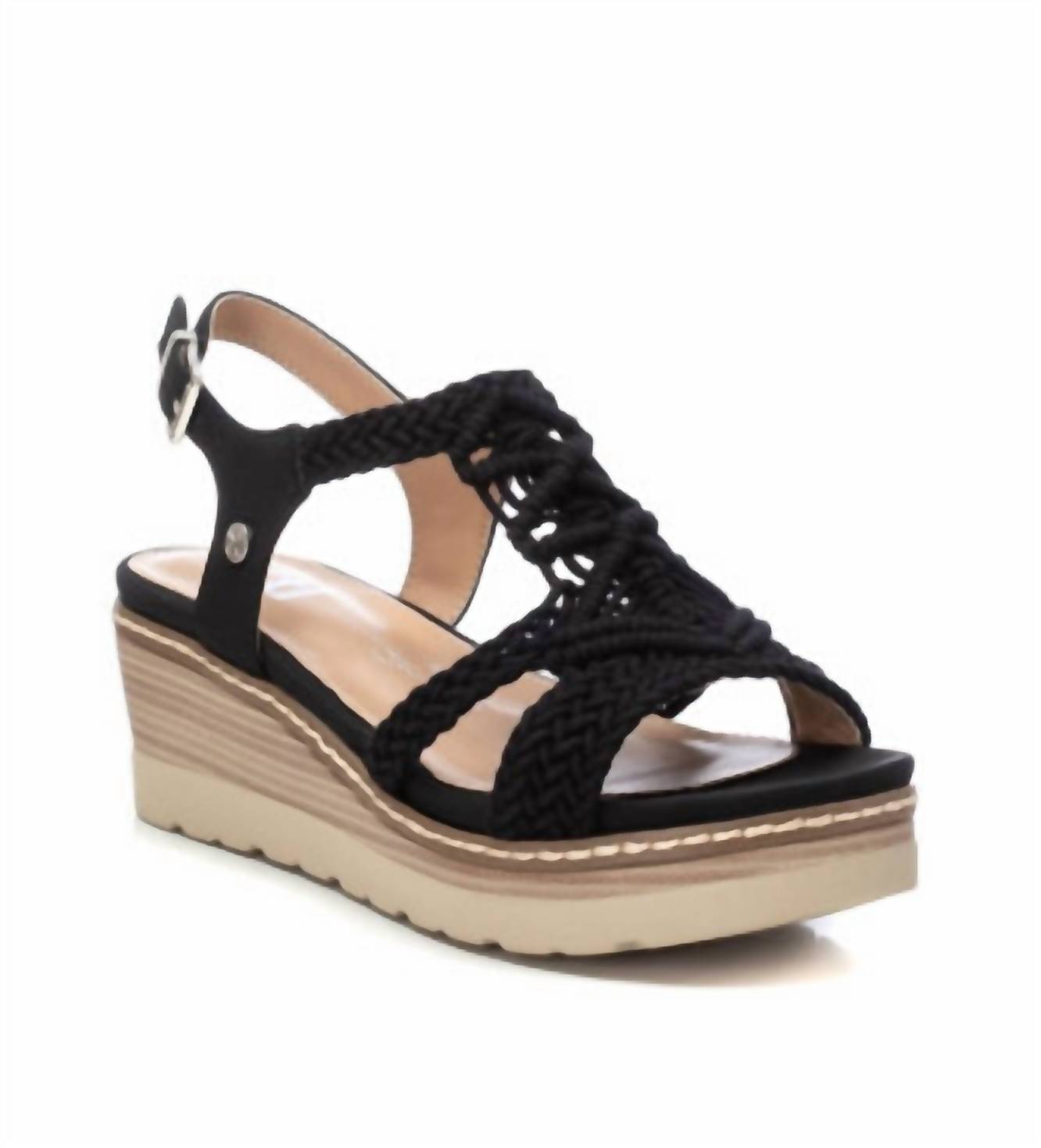 Flowy dresses, cropped pants, and even jumpsuits... this sandal works with them all! This Wedge Sandal features an intricate macramé knots design with a metallic buckle closure for a secure fit. The 6 cm, 2.36 inches wedge heel provides a subtle lift without compromising stability. Includes a non-slip rubber sole and is PETA-certified vegan, perfect for eco-conscious summer wear.​