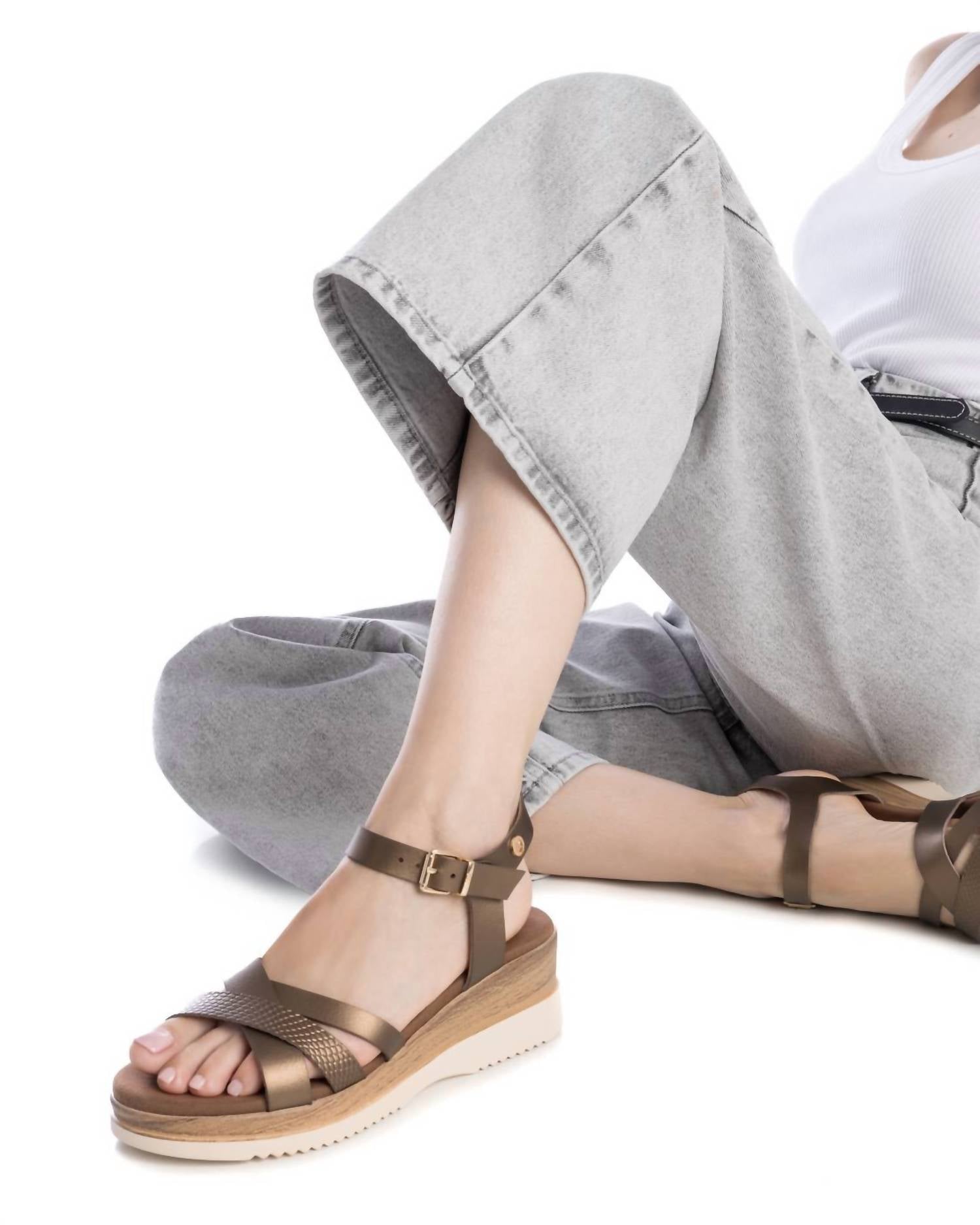 Classicly cute and all-day-wearable. We love this sandal. Get ready to elevate your look with the Women's Wedge Sandals by Xti in a striking bronze hue. Tailored for women, these sandals feature an open toe and a wedge heel, offering both style and comfort for any occasion. Whether you're heading to the office or enjoying a night out, these shoes are your go-to choice for chic and effortless style. Perfect for the adult age group, they're designed to keep you feeling confident and fashionable all day long.