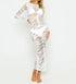 Elevate your beach day look, stunning sheer coverup in classic white. Designed with a chic leg slit, boho-chic coverup is crafted for summer vibes. Composition includes 90% Nylon and 10% Spandex, ensuring a comfortable and stretchy fit. Care instructions recommend hand washing to maintain its airy elegance. Model is wearing a size S.