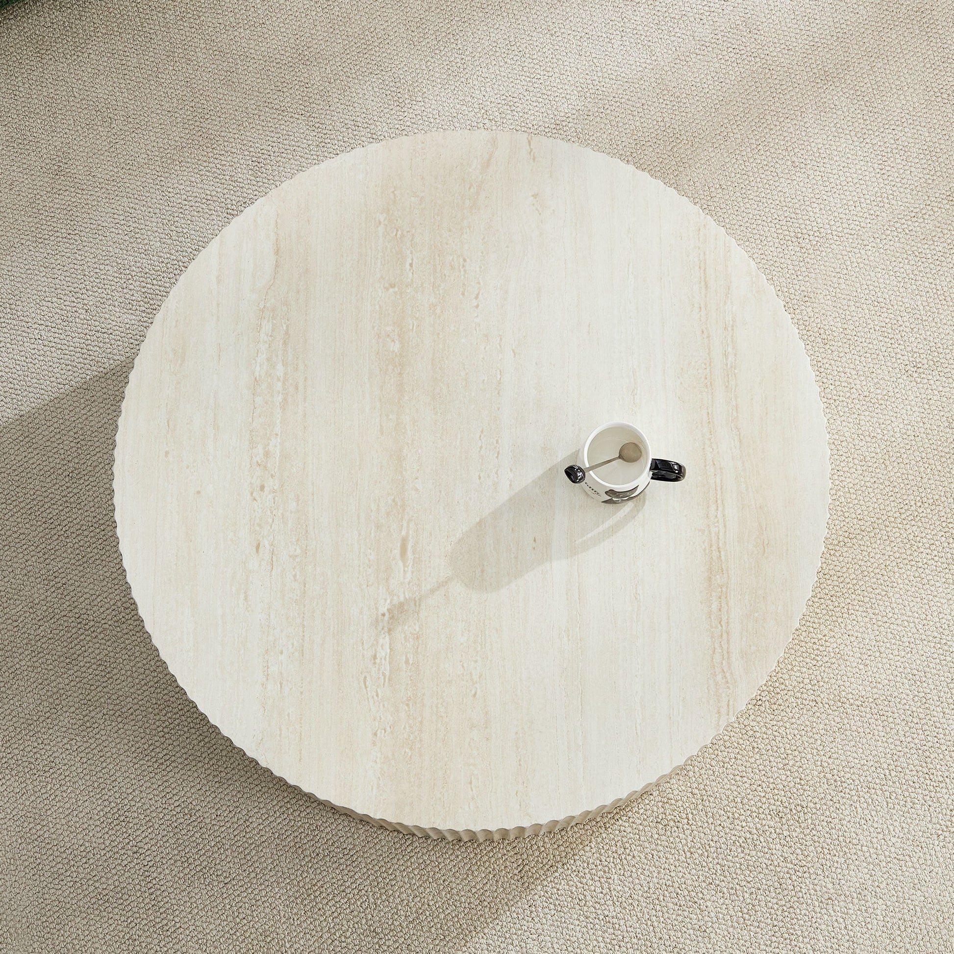 Faux Travertine Round Coffee Table with Eye-Catching Relief Design