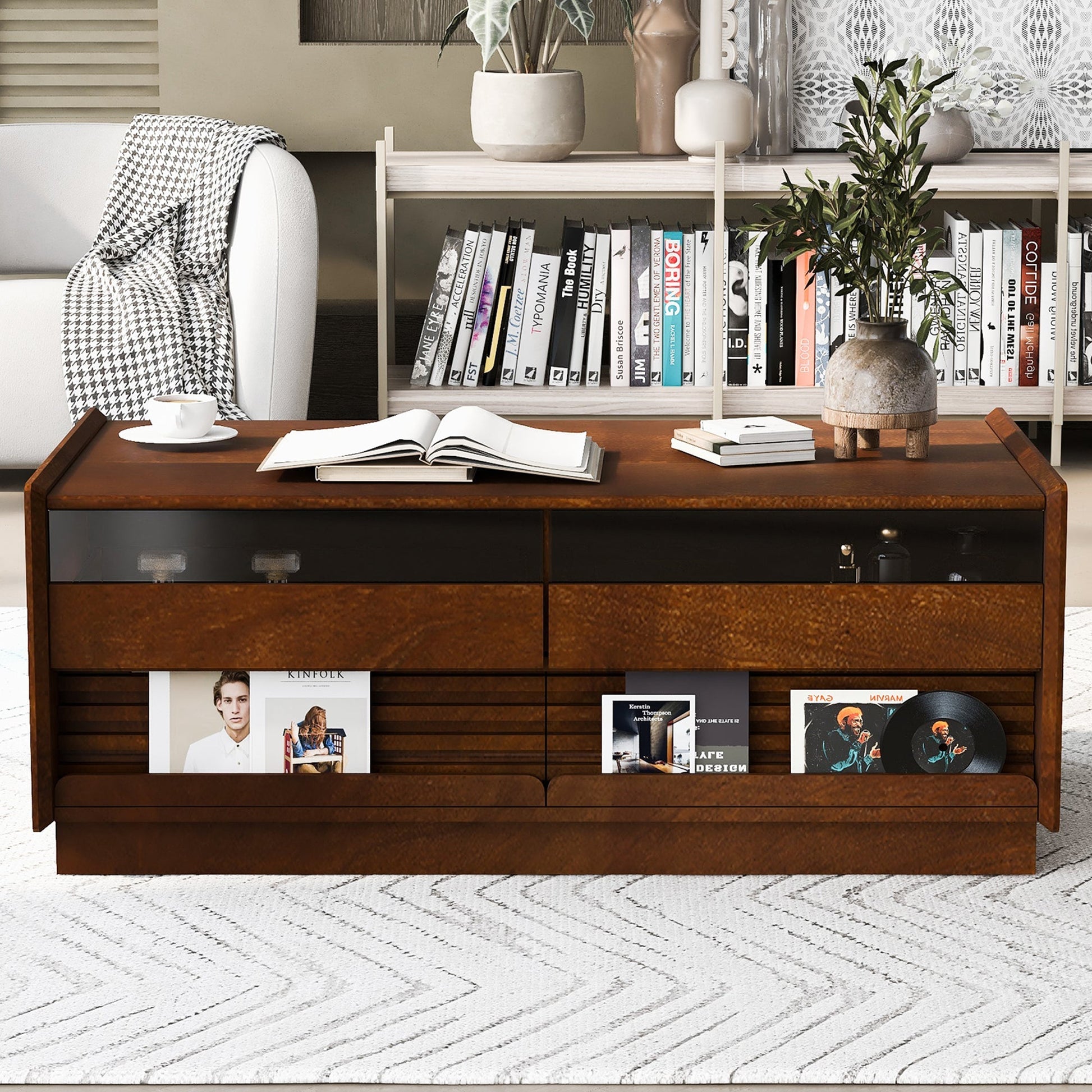 Modern Rectangle Coffee Table with 4 Drawers and 2 Display Shelves