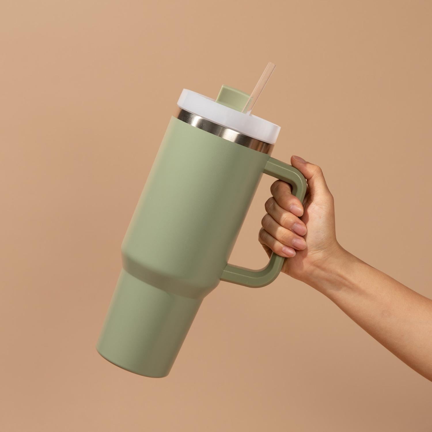Introducing the SWEET WATER DECOR 40 Oz Travel Tumbler, your go-to companion for hydration on-the-go in a stylish sage green. Crafted from premium stainless steel, this tumbler is designed to keep beverages hot for up to 8 hours and cold for up to 24 hours. It features a BPA-free lid and straw, with a three-position sliding sip cover for convenience. Designed in the USA and dishwasher safe, this tumbler combines functionality with eco-friendly design, making it an ideal choice for any occasion. Dimensions: 3" x 3.8" x 10.6" (12.2" with straw).