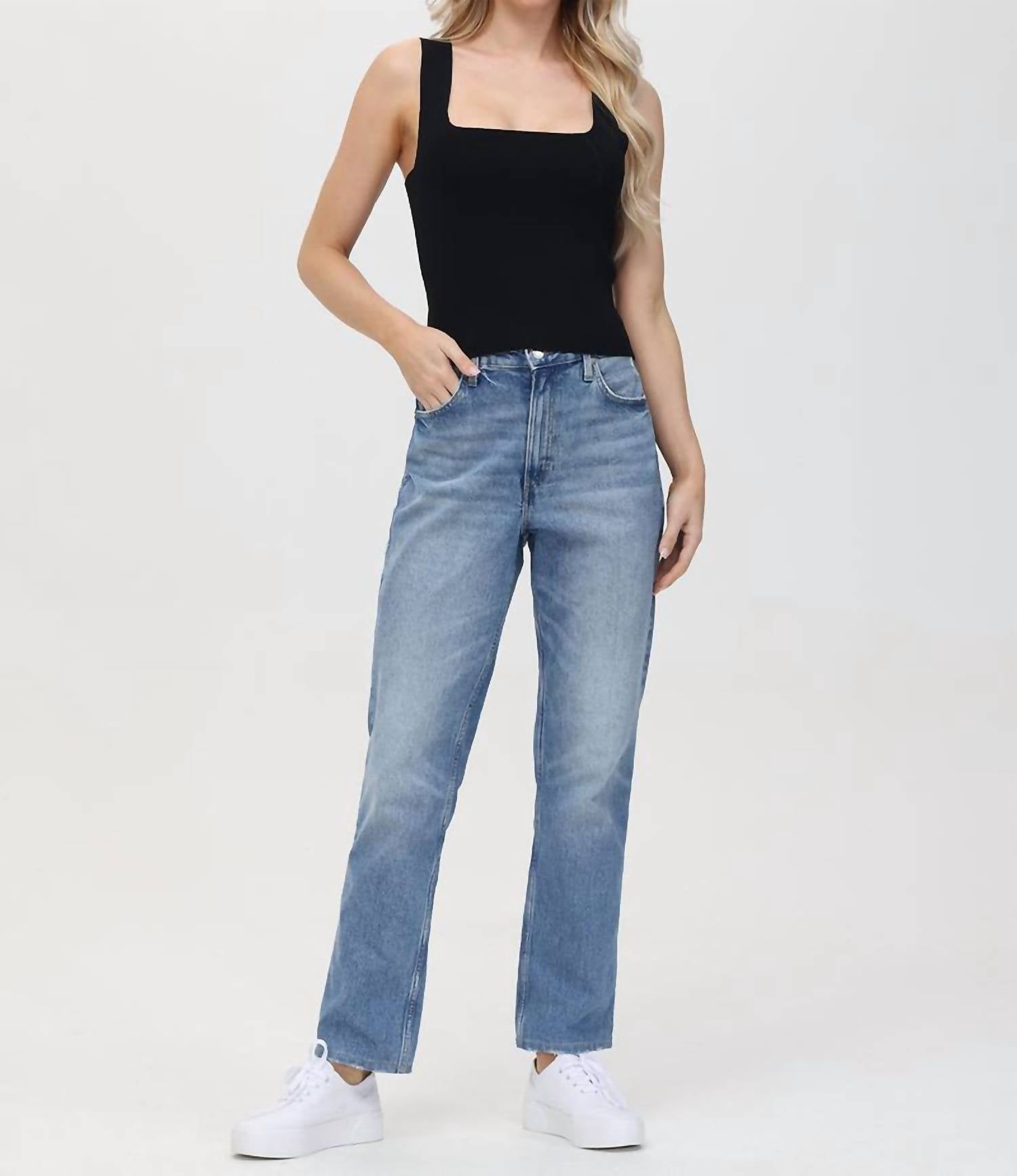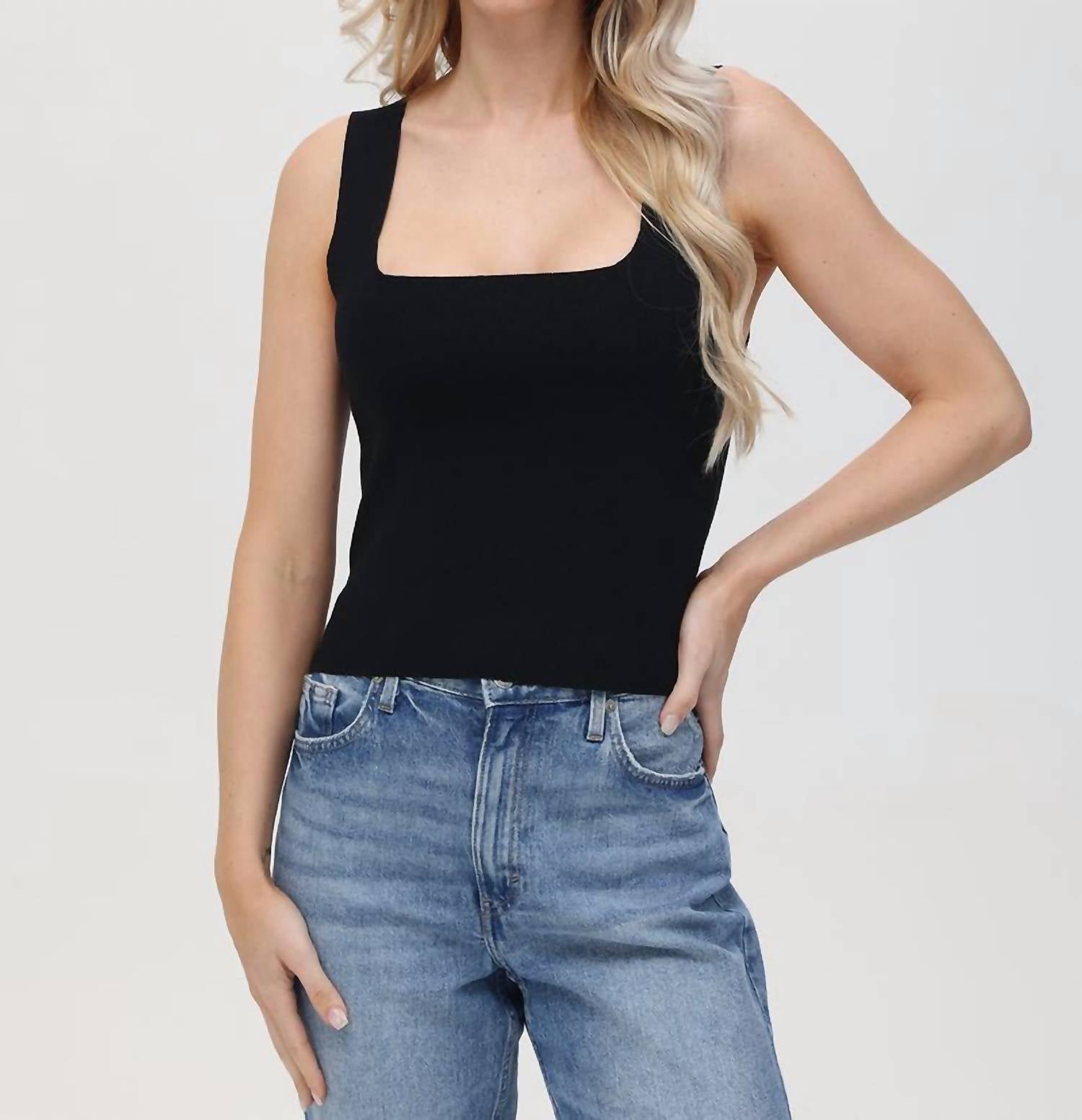 Introducing the Eva Square Neck Tank Top by 525 America, a versatile staple in sleek black. This sleeveless tank features a squareneck design and wide straps, offering a fitted silhouette that's perfect for layering. It is composed of a comfortable blend of 65% Viscose and 35% Polyamide, and measures 19" in length. Care instructions include turning the garment inside out, machine washing cold with like colors on a gentle cycle, and tumble drying low with a cool iron optional if needed.