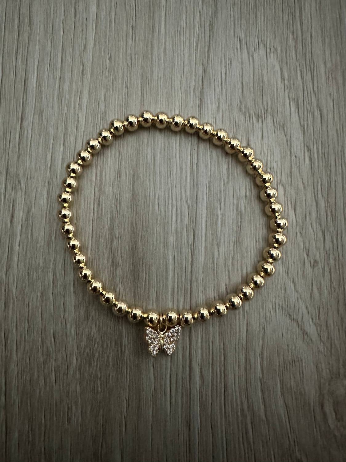 Introducing the Women's Hope Bracelet by Alexa Leigh, a stunning piece designed to inspire positivity and elegance. Crafted from 14k gold-filled material, this 5mm ball bracelet features a charming pave butterfly accent, showcasing exquisite craftsmanship. With an elastic stretch design, it ensures a comfortable fit on a 7.5" wrist. This fashion-forward bracelet makes a meaningful gift for yourself or a loved one.