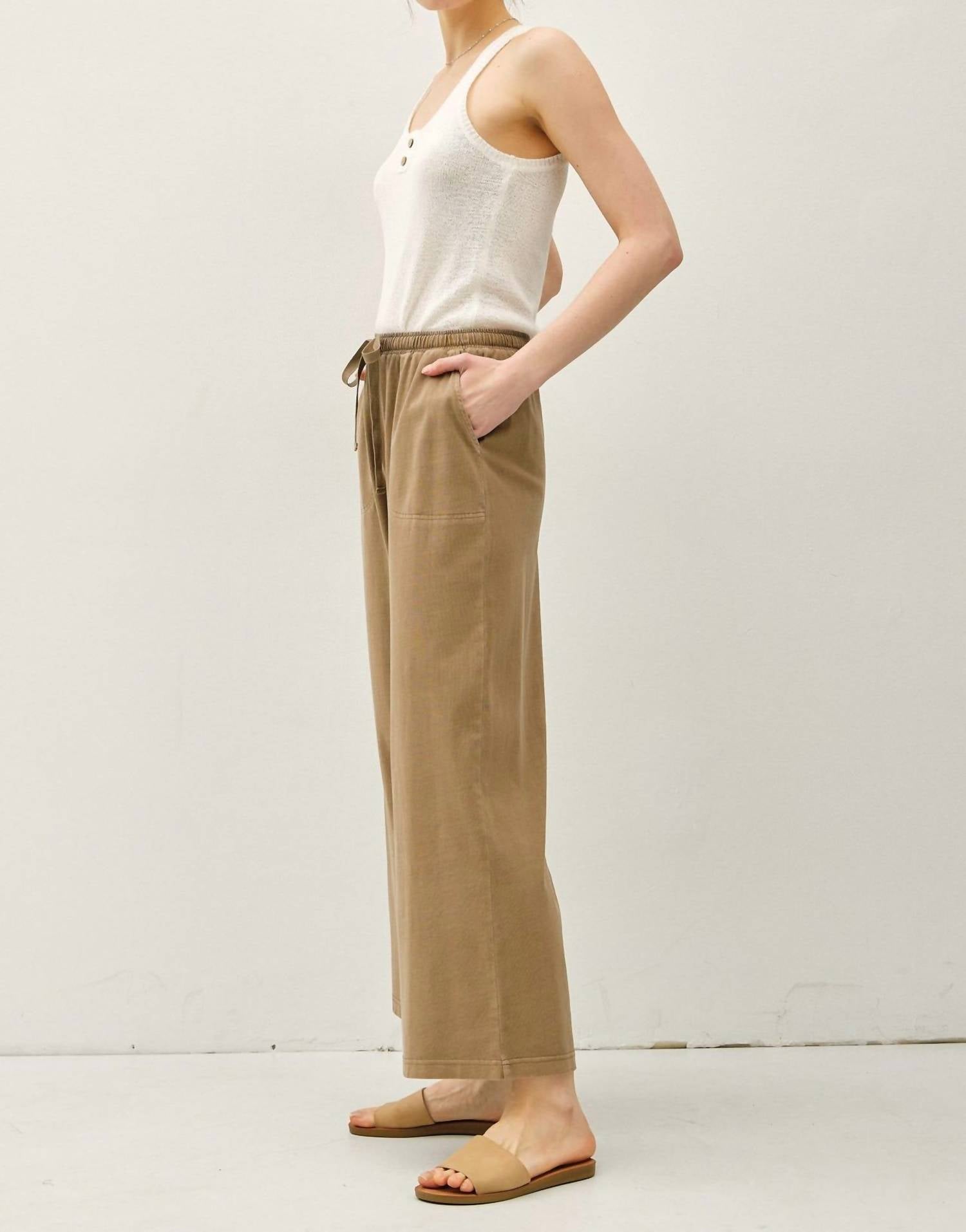Discover the Women's Wide Leg Pant by Be Cool, designed to bring both style and comfort to your wardrobe. This Golden Dune textured pant features a classic wide-leg design with a high-rise fit, made from 100% cotton. The pull-on elastic waistband with tie closure ensures easy wearability, while functional front pockets add practicality. Made for the streetwear trend, these pants are perfect for spring vacations or lounging days, promising all-day comfort in a chic, relaxed silhouette.