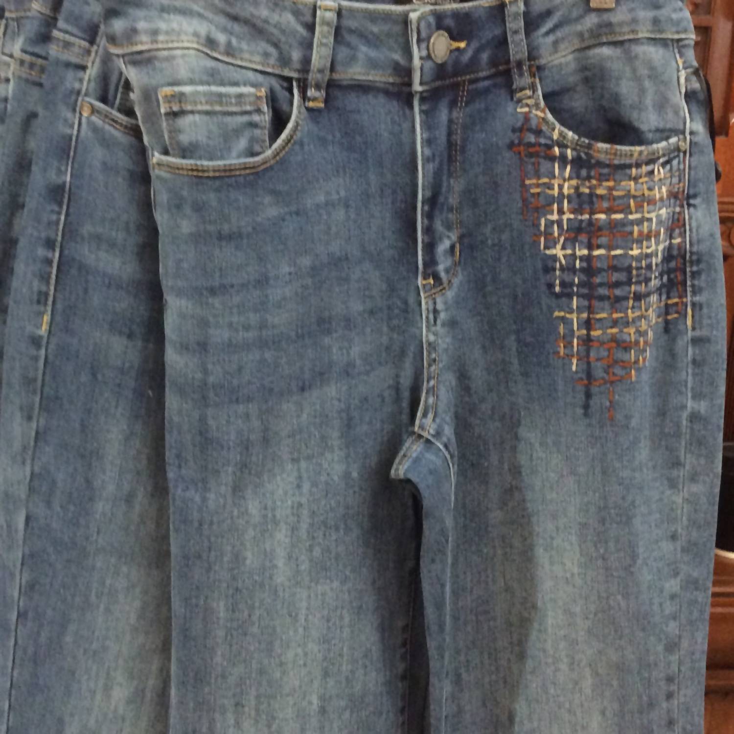 Just as cute as they are comfortable. Elevate your wardrobe with the Multicolor Stitching Jeans by CHARLIE B, a stylish choice for the modern woman. These medium-blue wide-leg jeans feature a comfortable mid-rise waist and a distinctive five-pocket design with embroidery detail. Crafted from a cotton blend of 73% cotton, 23% polyester, 3% viscose, and 1% spandex, they offer both flexibility and durability. Closure: Button closure. Care is simple with machine wash instructions, hang to dry, and low iron setting recommended. The jeans have a 31-inch inseam and a 9.5-inch rise, perfectly complementing the streetwear trend for the summer and ideal for a Thanksgiving holiday party.
