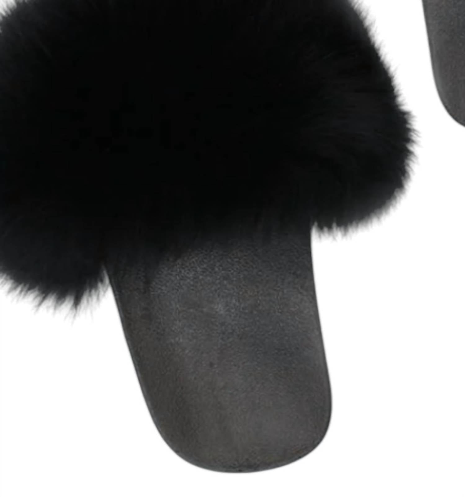 Classicly cute and all-day-wearable. We love this sandal. Elevate your lounging experience with the Women's Furries Slide Slippers by Maniere, designed in chic black. These slippers feature a luxurious faux fur material for cozy comfort, perfect for at-home relaxation. With a memory padded footbed and a flat heel under 1", they offer plush support and a round toe shape for ideal ease. Enjoy the blend of style and comfort with these must-have sandals.