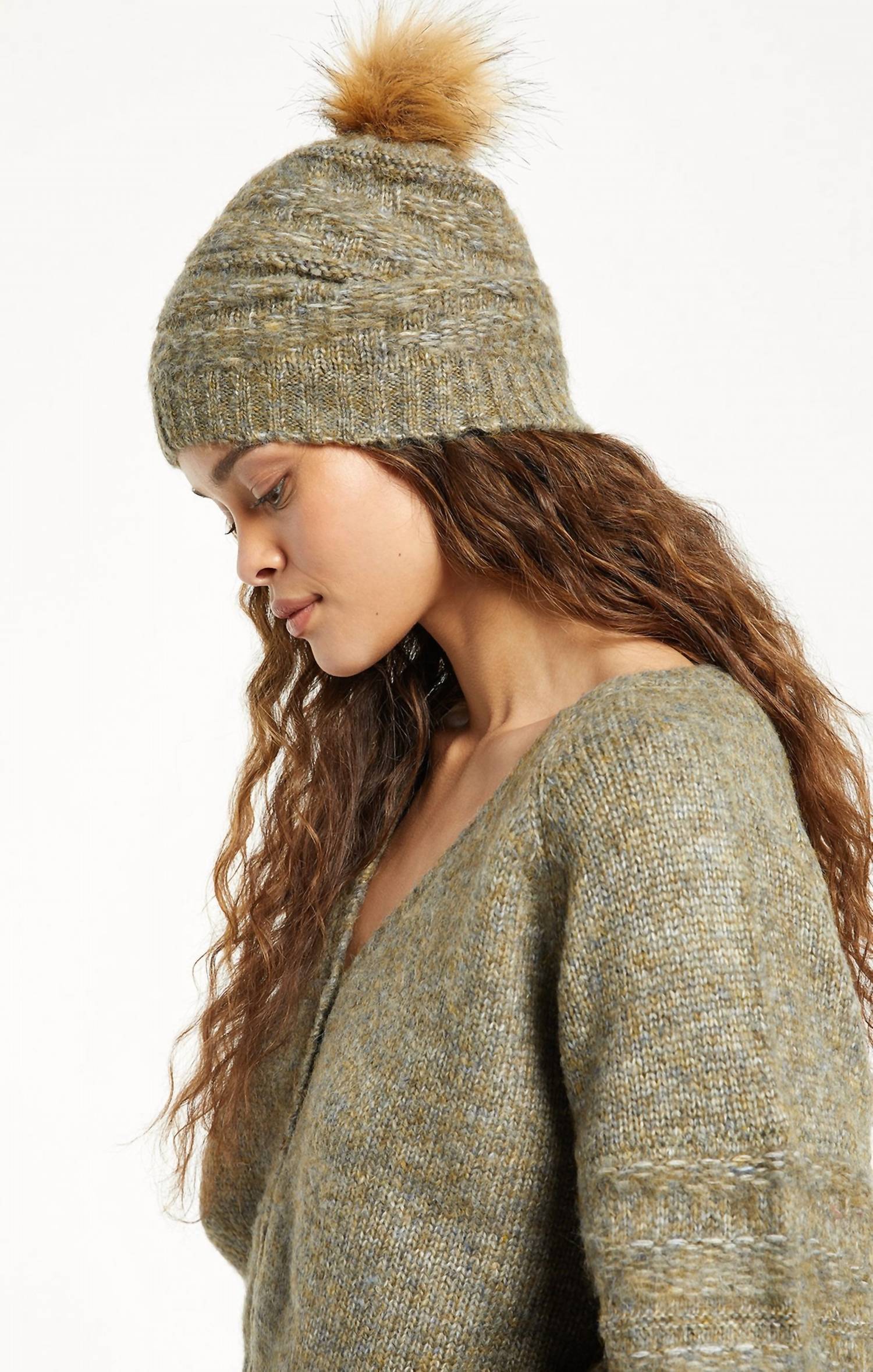 Top off your look with the Ombre Beanie! Made in the same yarn as our Kersa Ombre Sweater, this beanie features a soft jeweled toned ombre and a faux fur pom pom that matches perfectly.