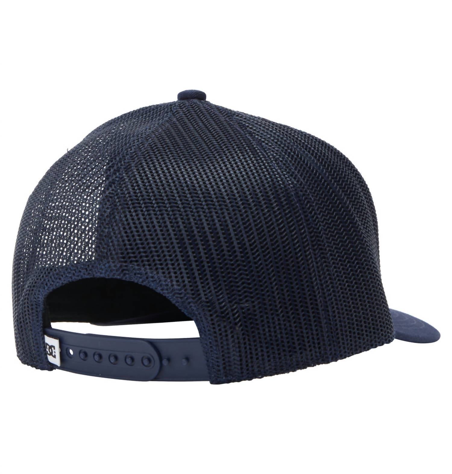 Elevate your casual look with the Men's Garage Trucker Hat by DC Shoes, featuring a stylish Navy Blazer hue. This hat is crafted from cotton twill fabric, complemented by polyester mesh back panels and a 5-panel construction for enhanced breathability. It includes a semi-curved bill and a snapback adjustable plastic rear closure for a customizable fit. Decorated with a woven patch and embroidered edge at the center front, this hat exudes a refined edge. Composition: 100% Cotton.