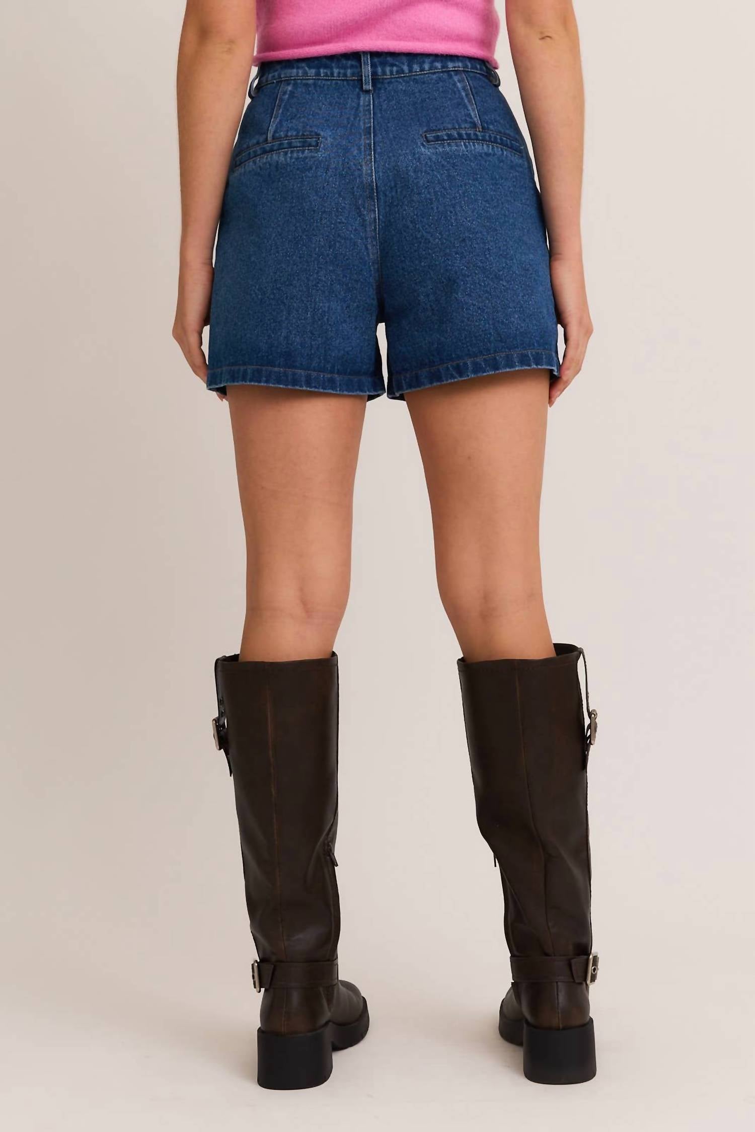 Jean shorts so versatile, you can literally wear them with anything. Discover the Alyx Pleated Denim Shorts by LE LIS, perfect for embracing summer style at music festivals or Thanksgiving gatherings. These women's jean shorts feature a chic pleat front detail and practical hip pockets, crafted from solid medium wash cotton with no stretch for a true-to-size fit. Closure comes with a convenient zip, ensuring easy wear, while care instructions recommend machine washing and tumble drying. Pair these trendy Y2K-inspired shorts with the Alyx Denim Vest for an effortlessly coordinated look.