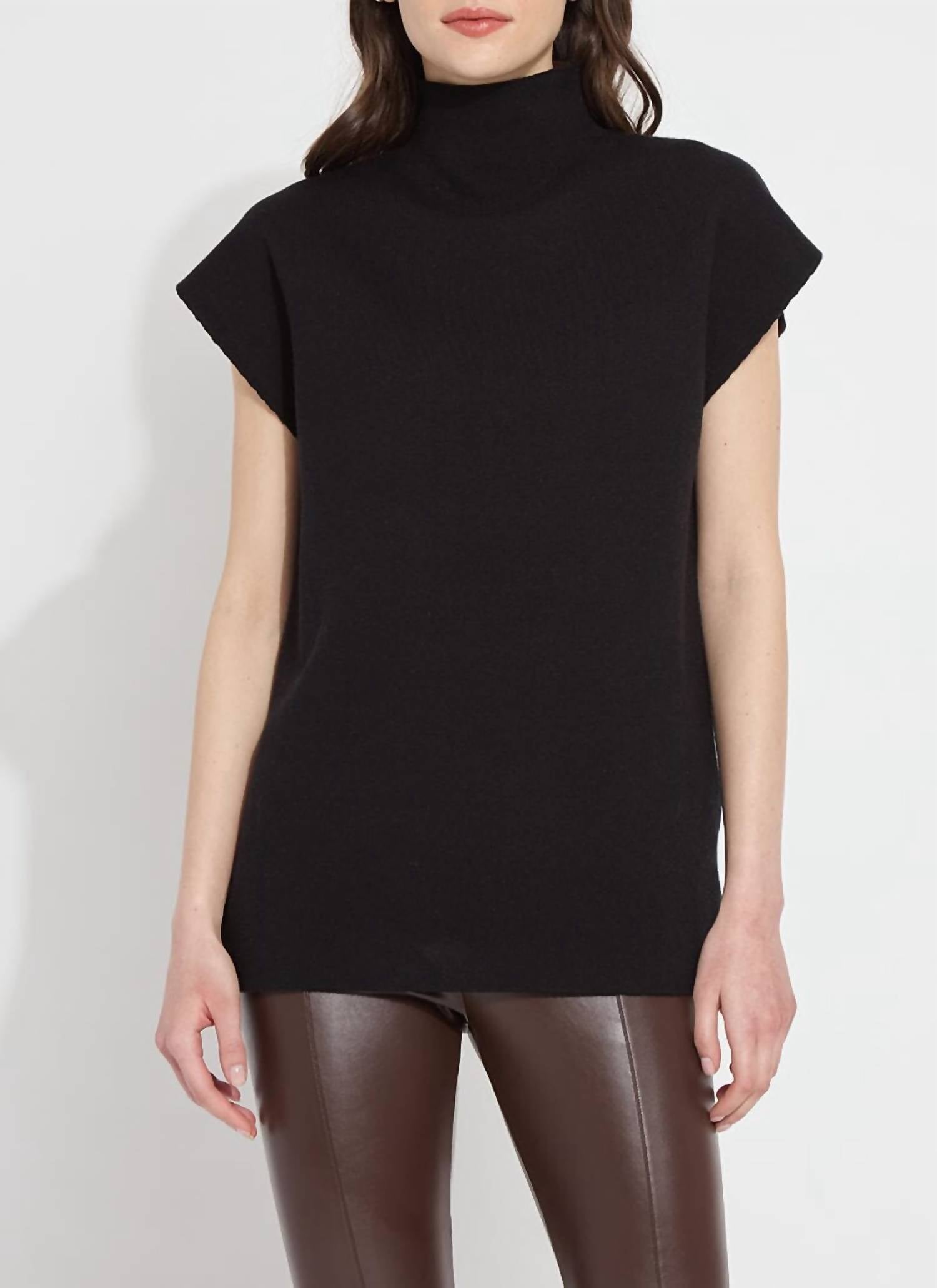 Embrace the versatility of this tunic-style blouse, expertly crafted for seamless layering or perfect to wear on its own. Its detailed design and comfortable fit make it a perfect addition to any closet. Introducing the Cortado Knit Sweater Tunic Top by Lysse, a quintessential piece for your autumn wardrobe in elegant black. This tunic is crafted from a double-face Cozy Jacquard Knit, composed of a 60% Viscose, 30% Nylon, and 10% Polyester blend, offering a luxurious feel and four-way stretch. The sleeveless design with a turtleneck and relaxed fit ensures comfort, with a legging-friendly length that's ideal for layering. Closure: Pull on. Care: Machine wash. Model is 5’10” and wearing size S, perfectly embodying 90s fashion.
